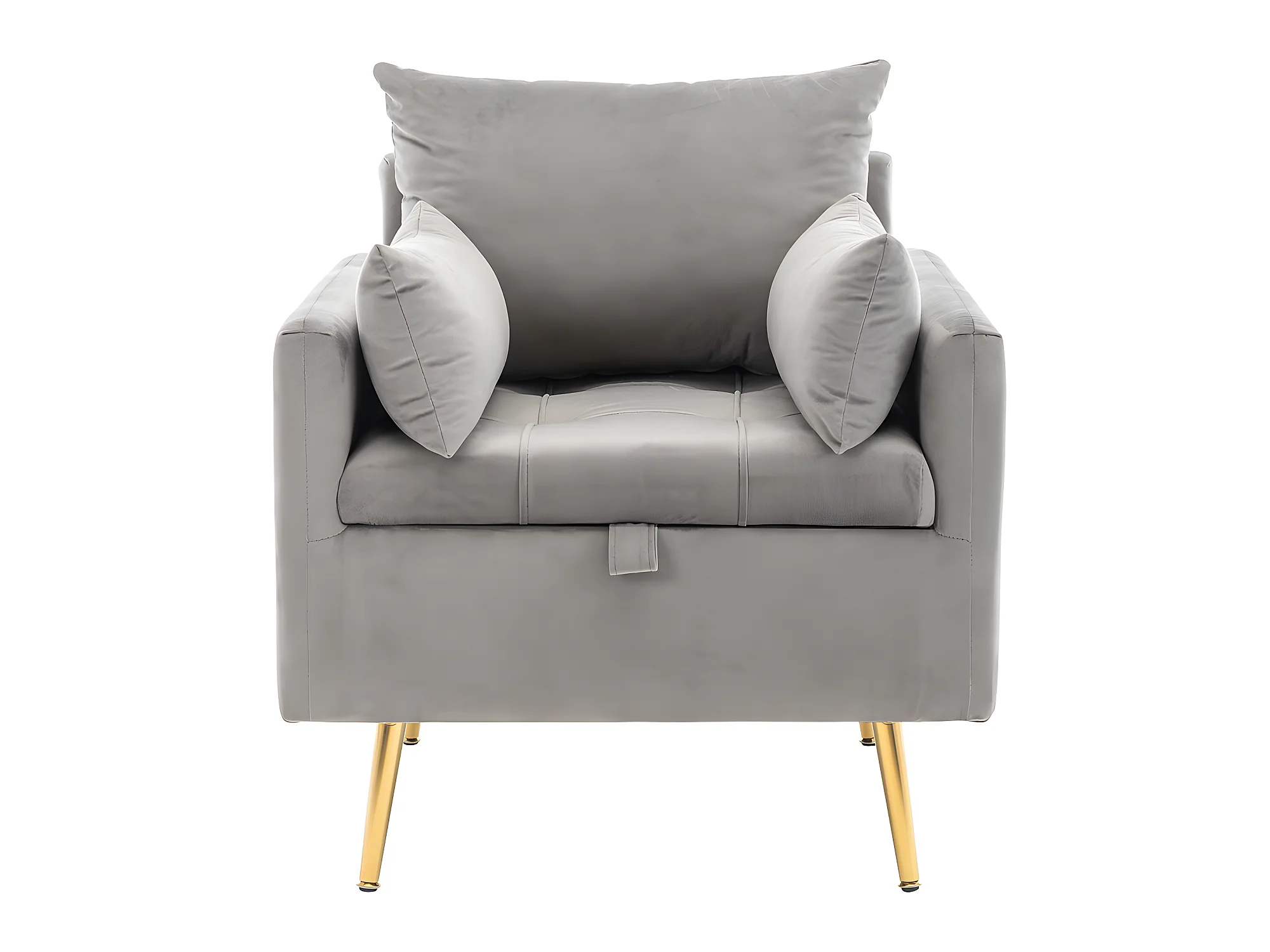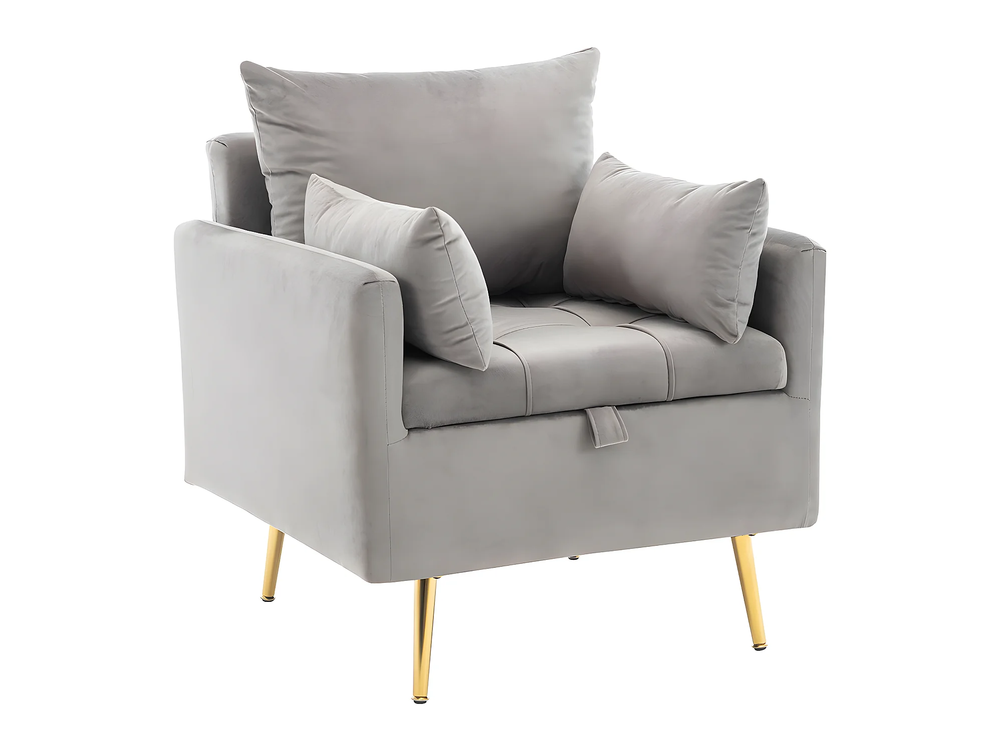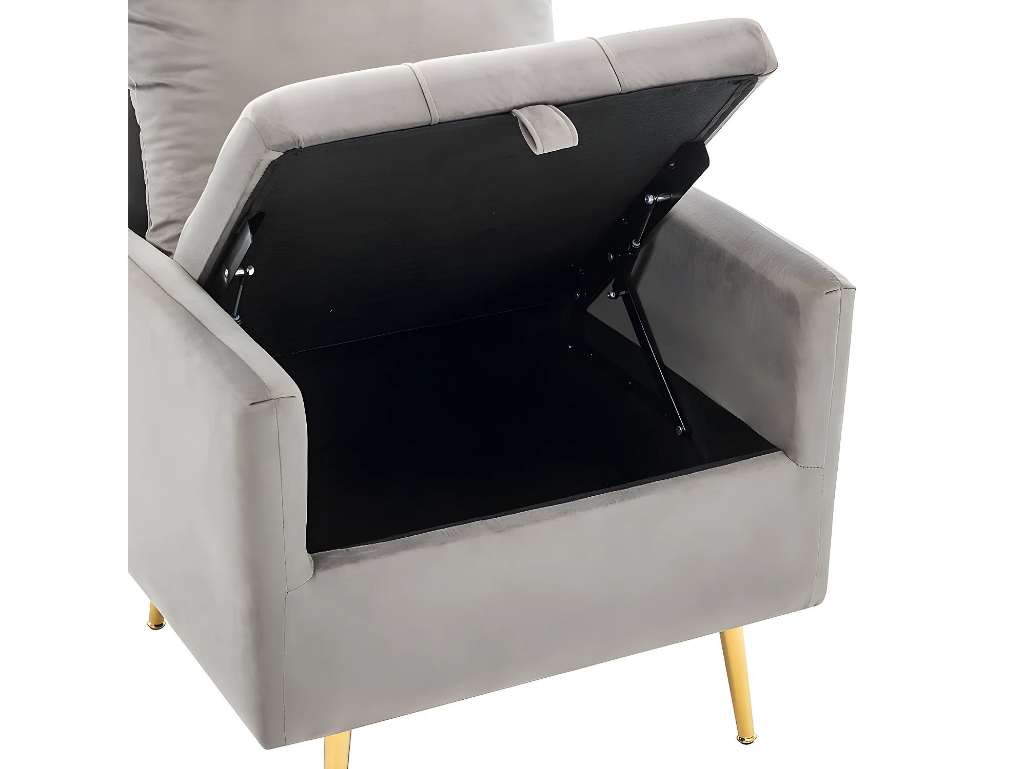 Fauteuil tissu en velours - pieds dorés en métal - avec rangement - gris - Sweiko