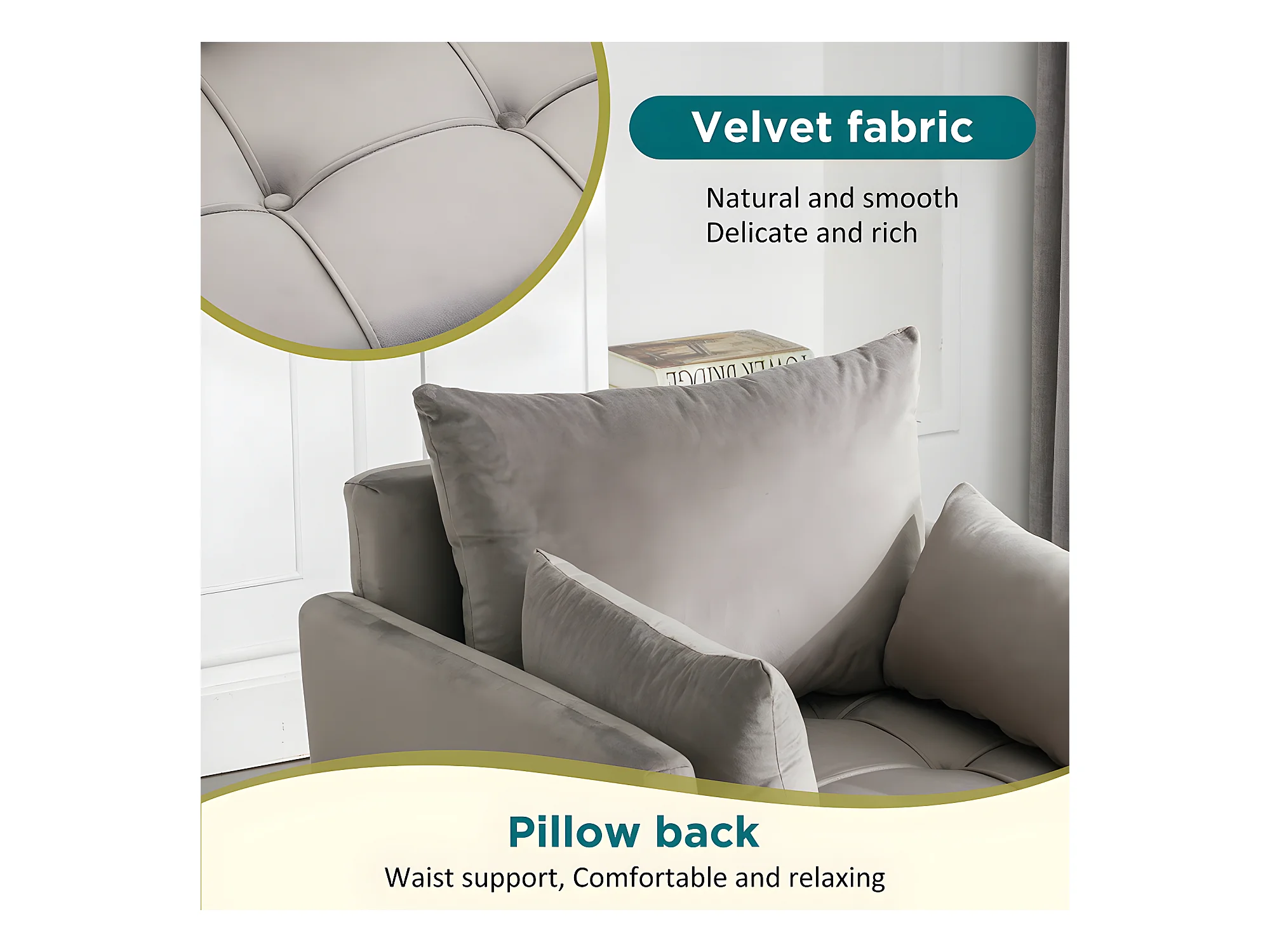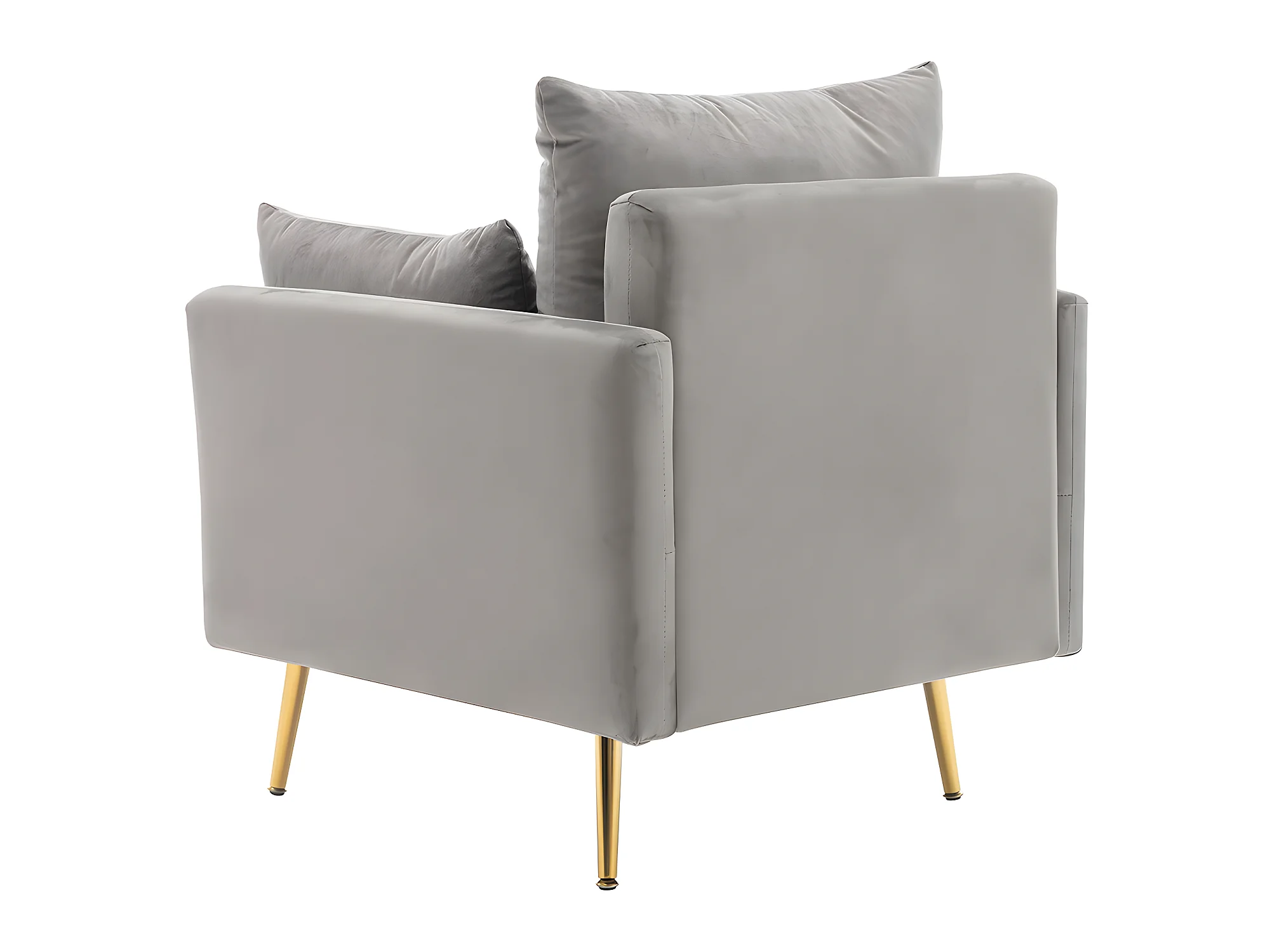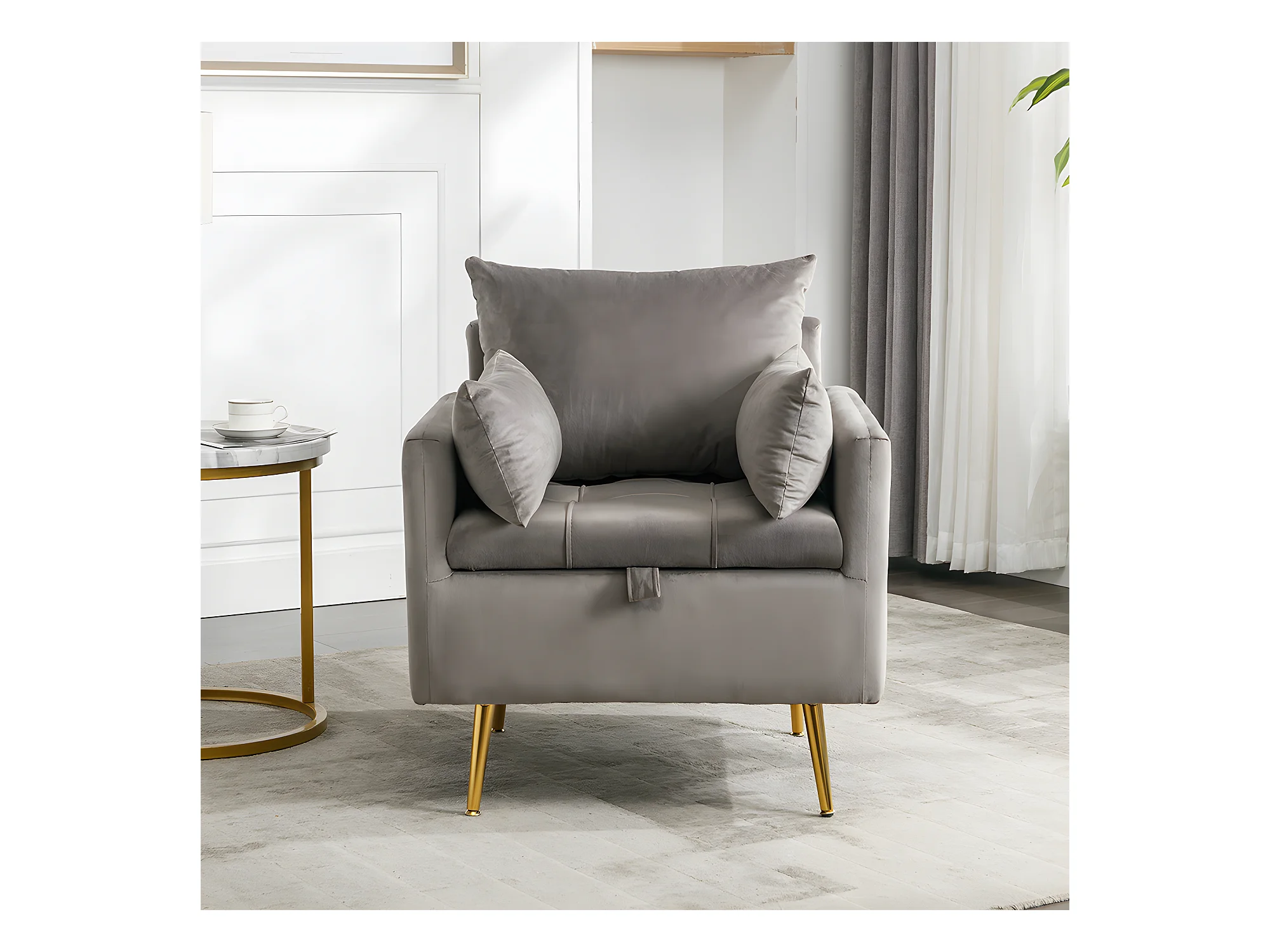 Fauteuil tissu en velours - pieds dorés en métal - avec rangement - gris - Sweiko