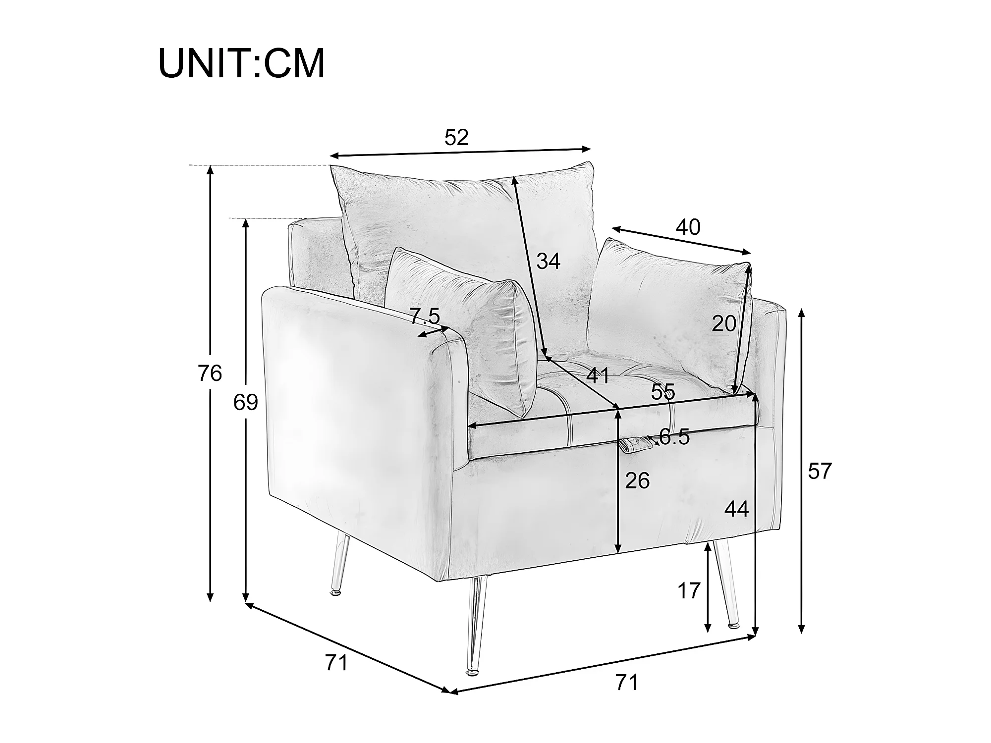 Fauteuil salon-Chaise d'appoint-Fauteuil gris tissu SHL2631