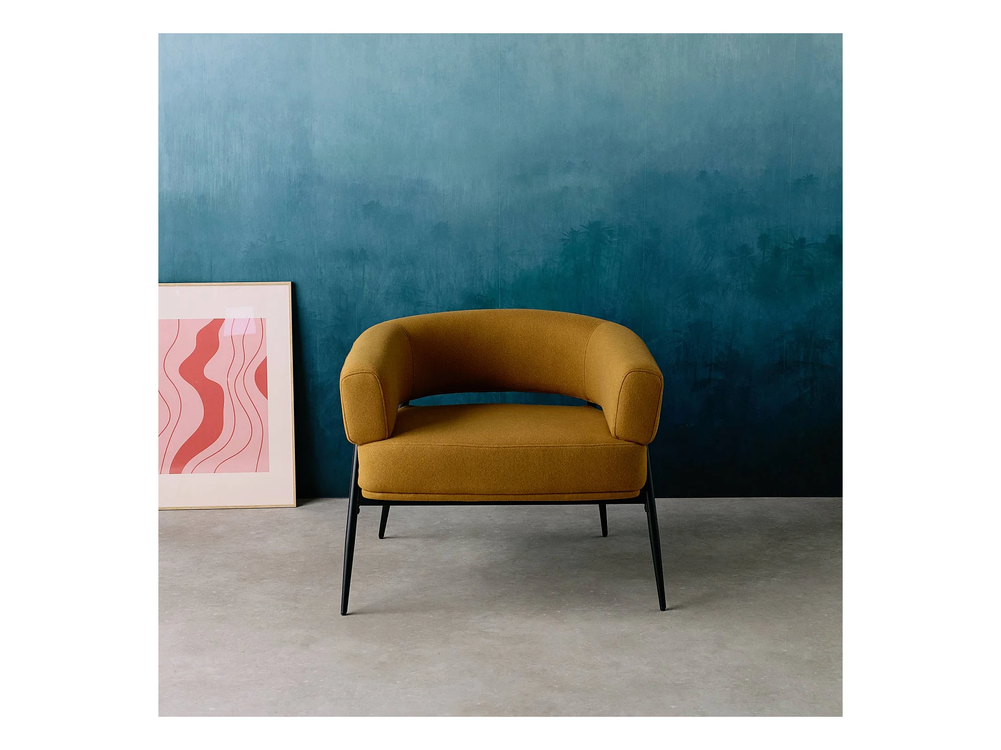 Fauteuil tissu moutarde dossier incurvé piétement métal L 81.5 x P 72.5 x H 69 cm - Cristo