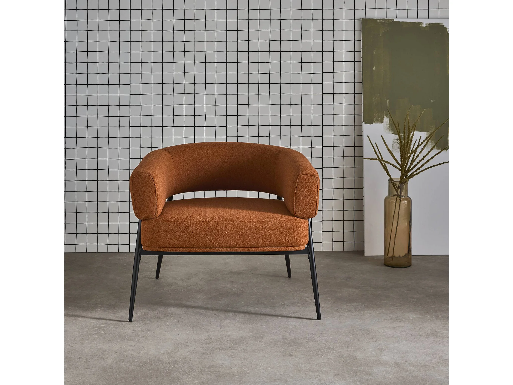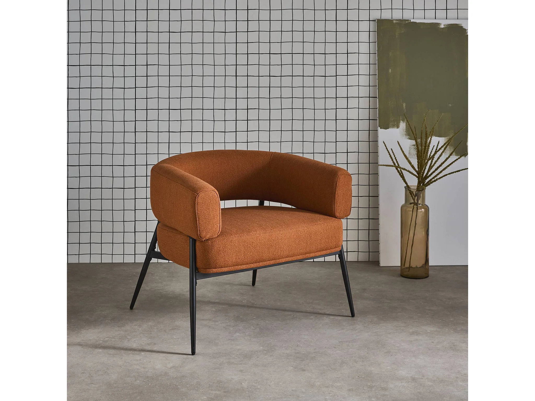 Fauteuil tissu terracotta dossier incurvé piétement métal L 81.5 x P 72.5 x H 69 cm - Cristo