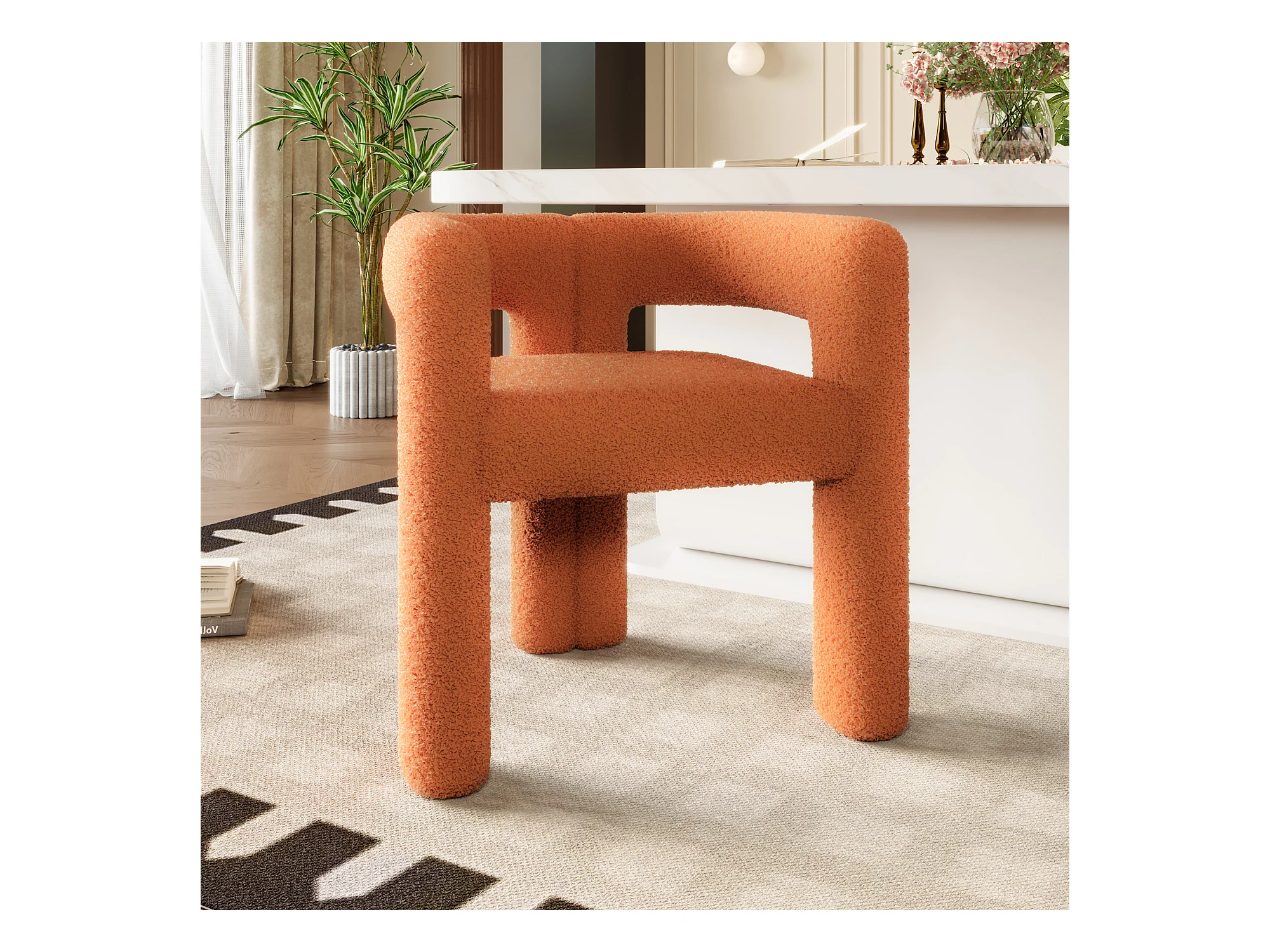 Fauteuil, tissu velours teddy,Orange