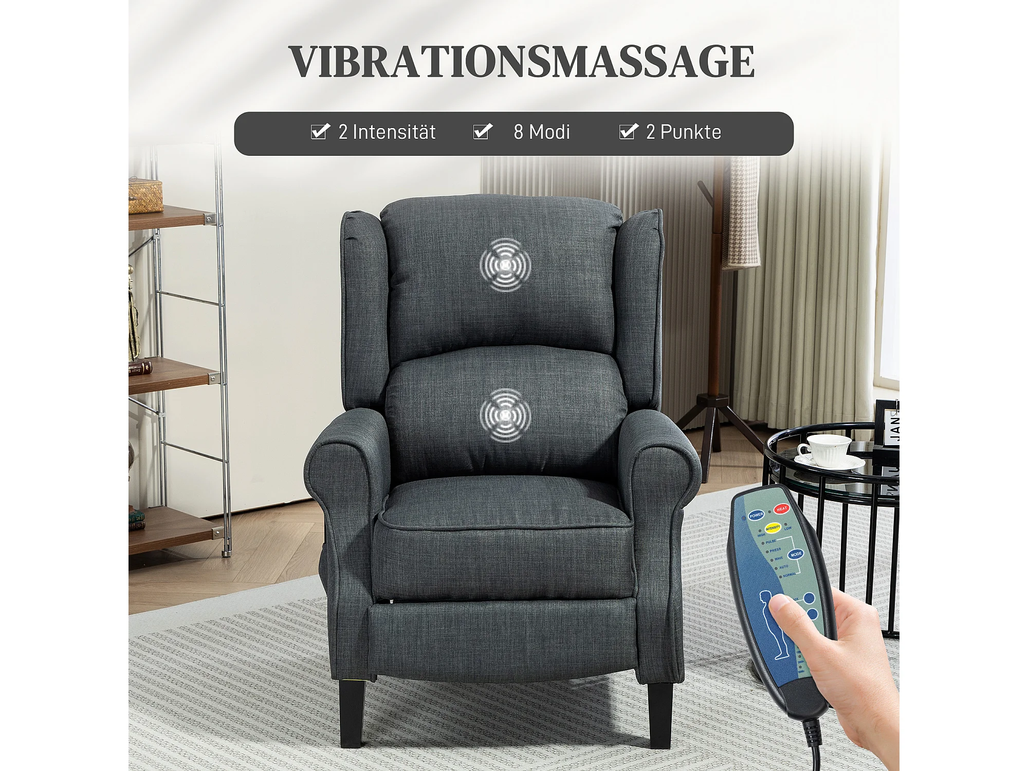 Fauteuil TV relax électrique avec massage et chauffage, revêtement polyester, gris foncé (78x83x101cm)