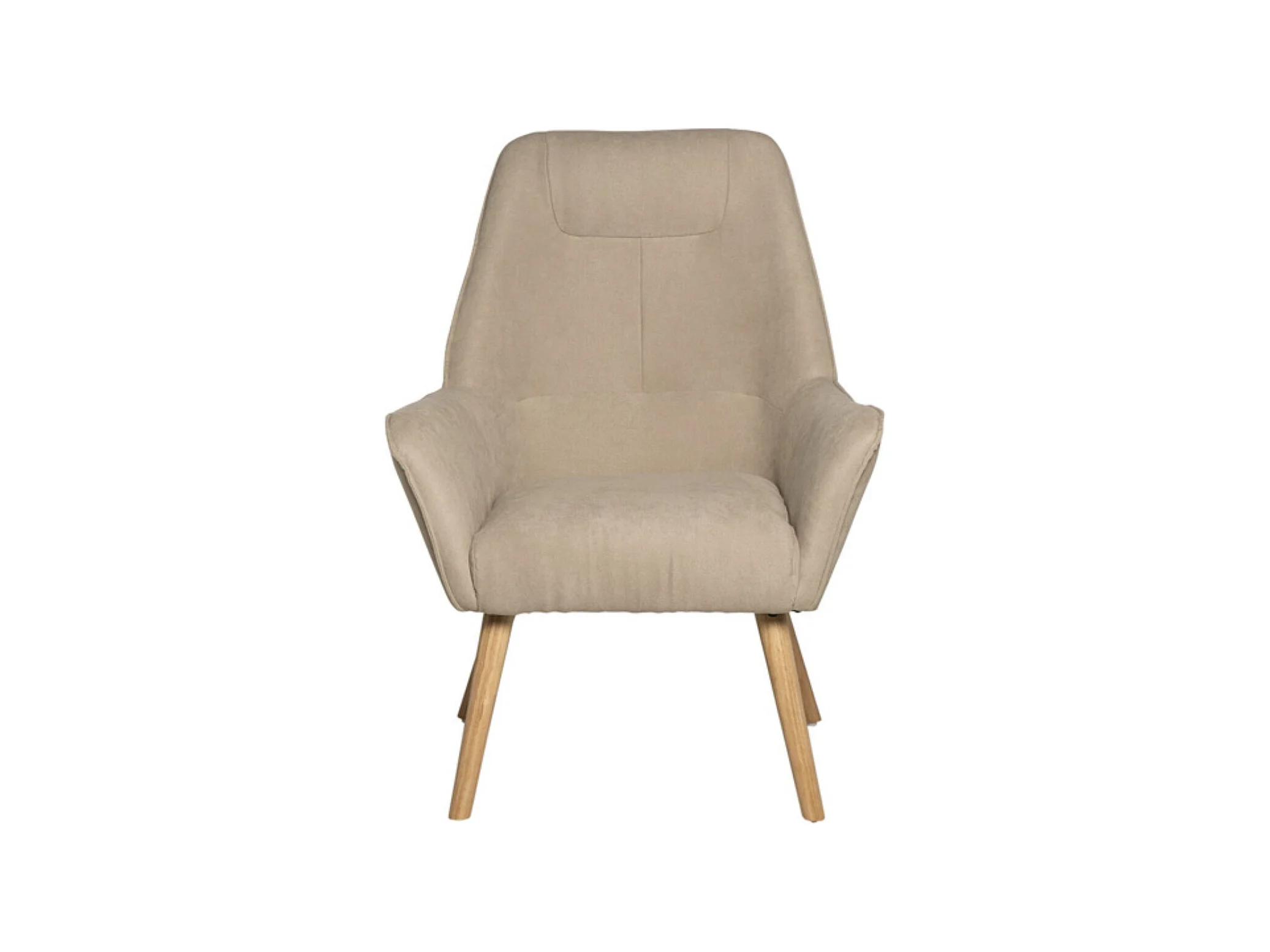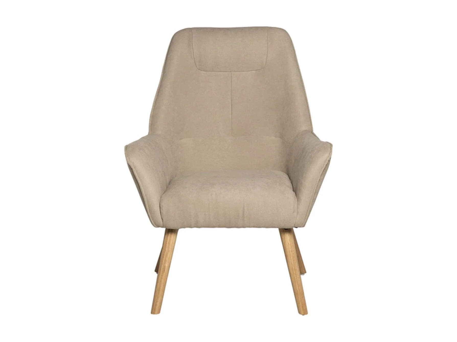 Fauteuil velours avec pieds légèrement en bois naturel Baky-Beige