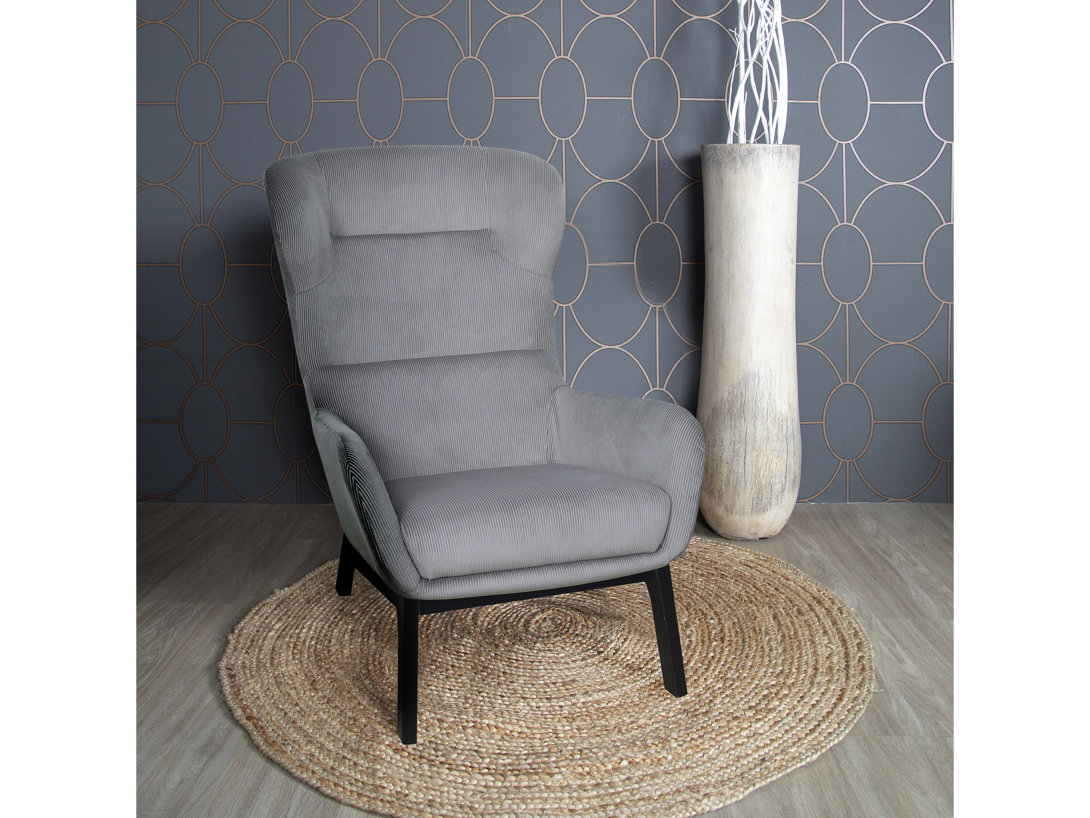 Fauteuil Velours Cotele Roma Gris Fonce Gris