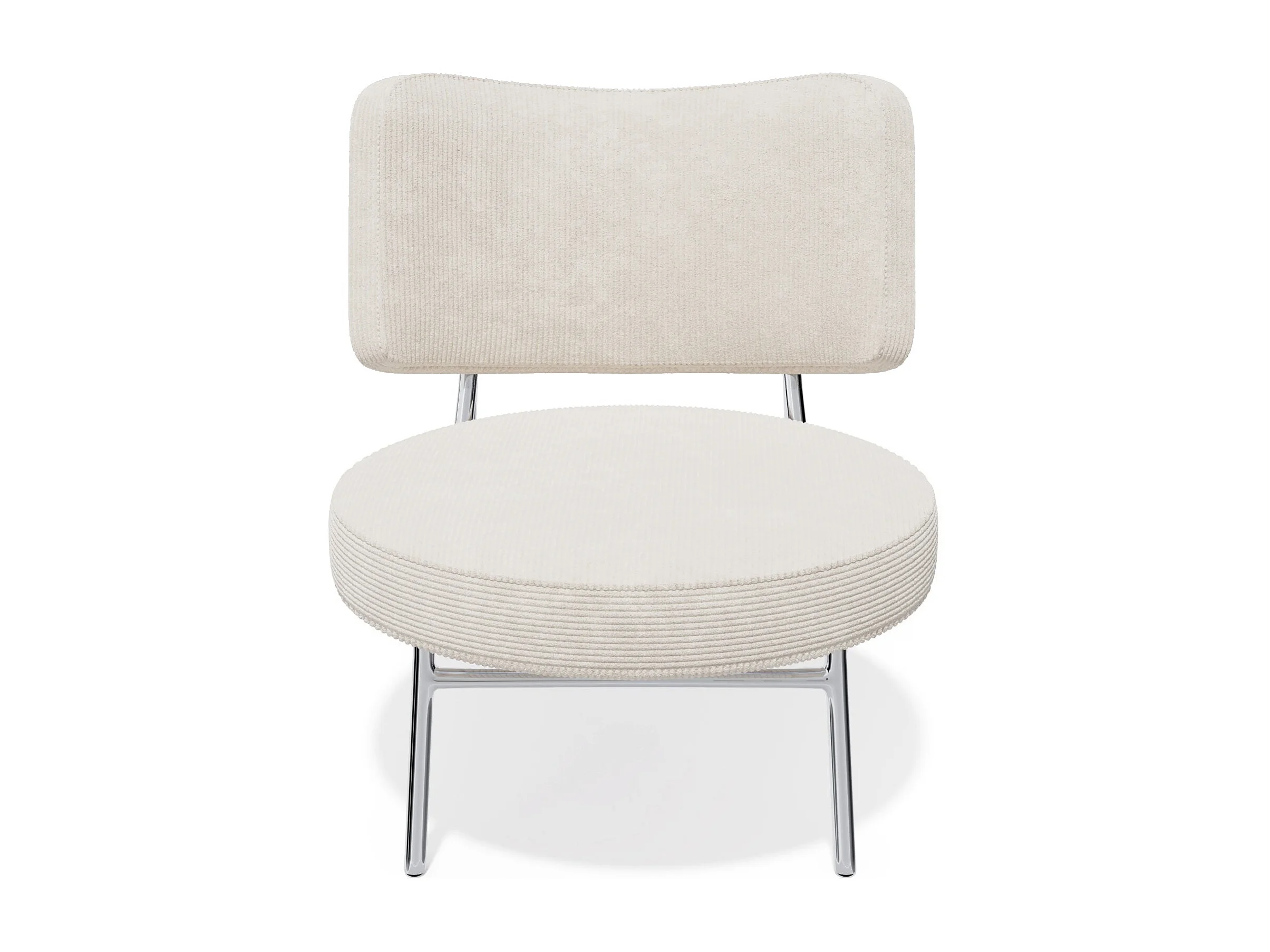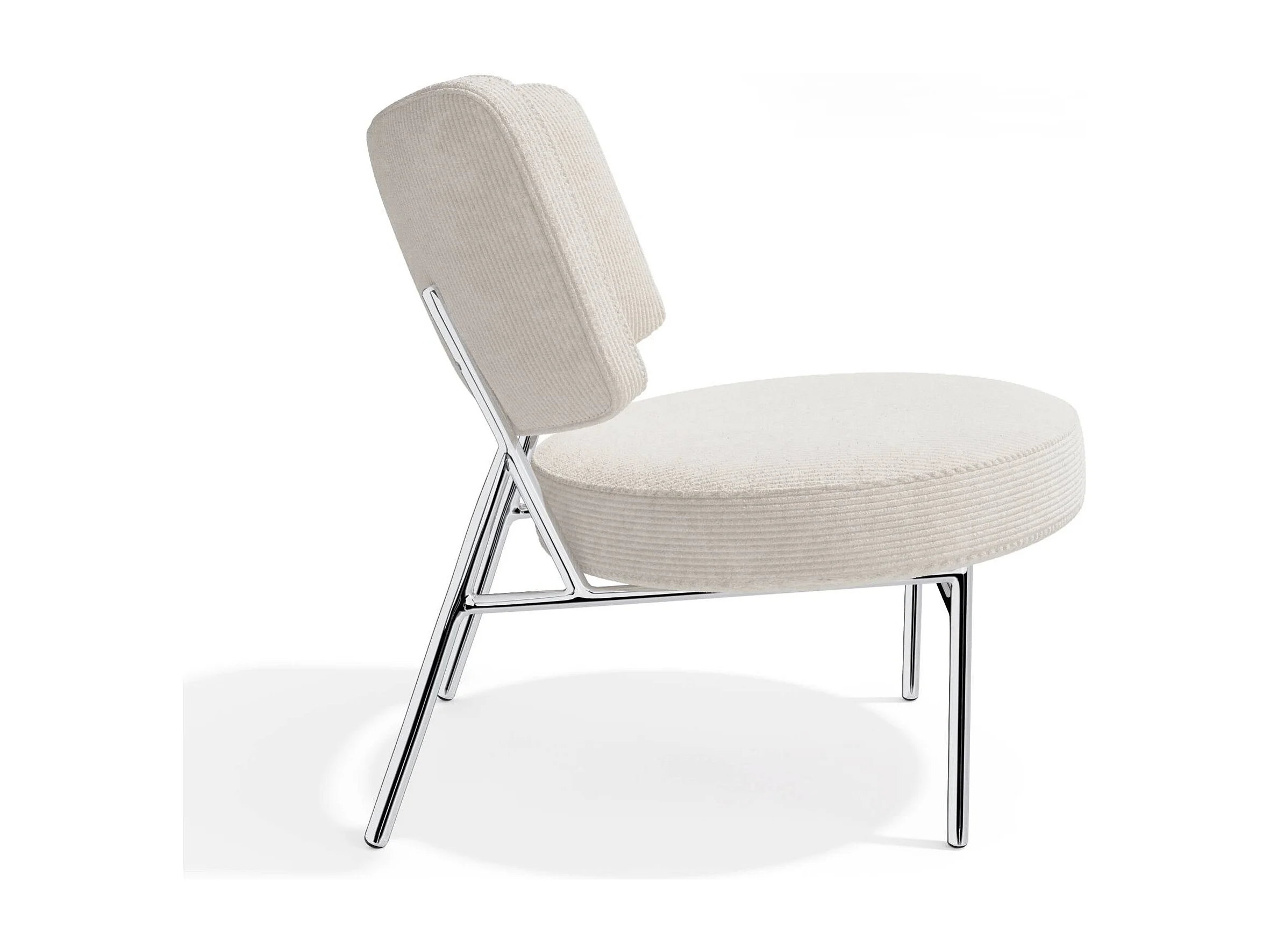 Fauteuil de salon pivotant pied chrome velours texturé écru TIMELESS