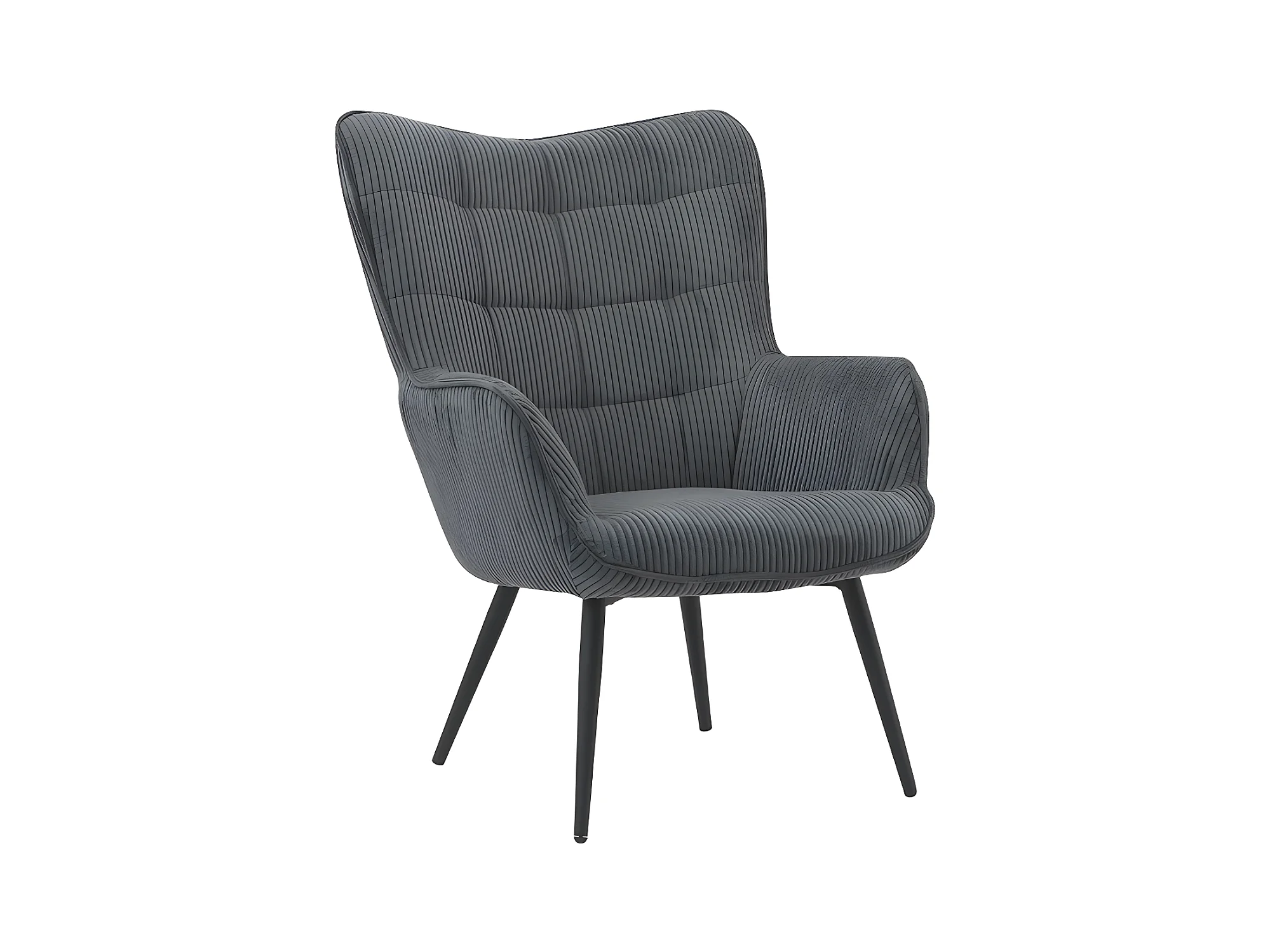 Fauteuil velours côtelé gris anthracite Uka pieds métal