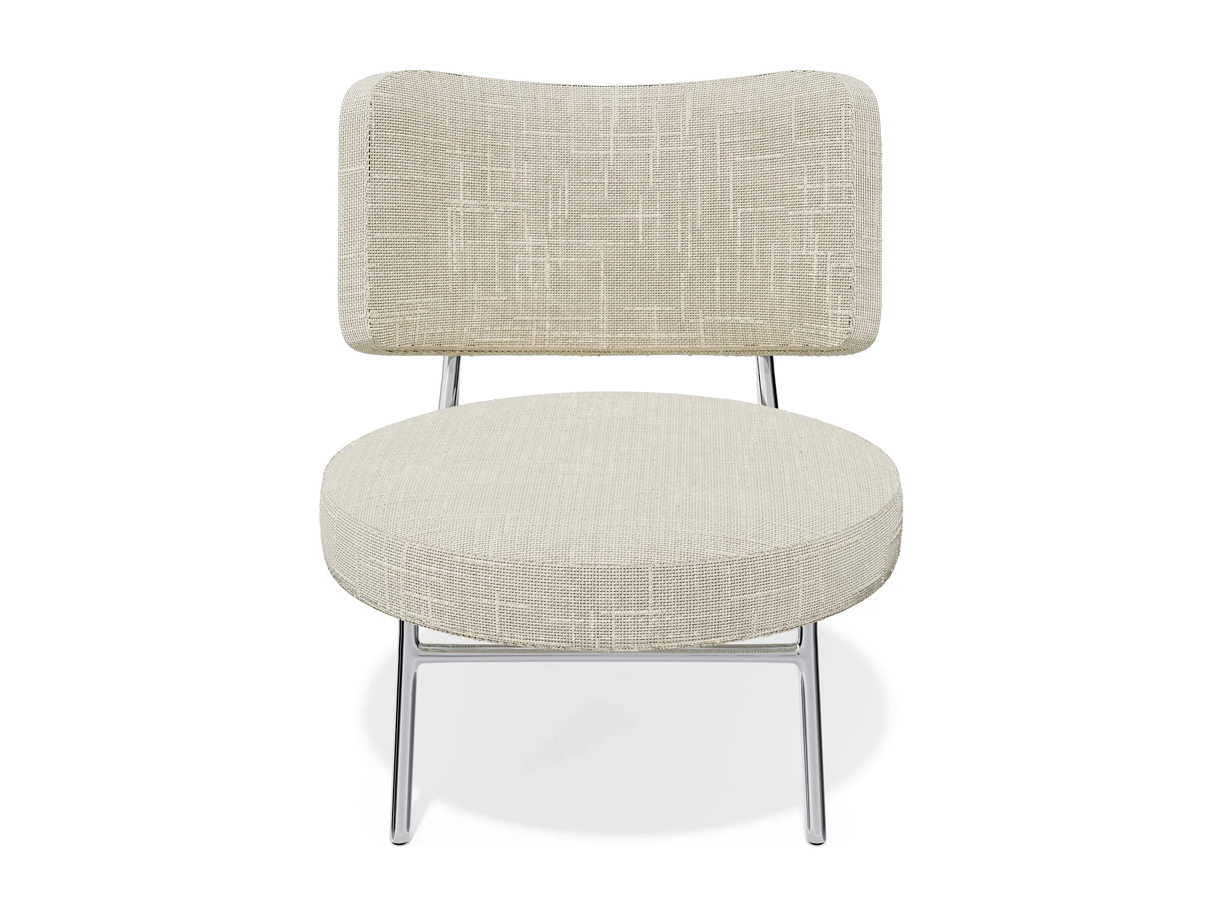 Fauteuil capitonné velours beige clair et pieds chromés Herakles 108cm