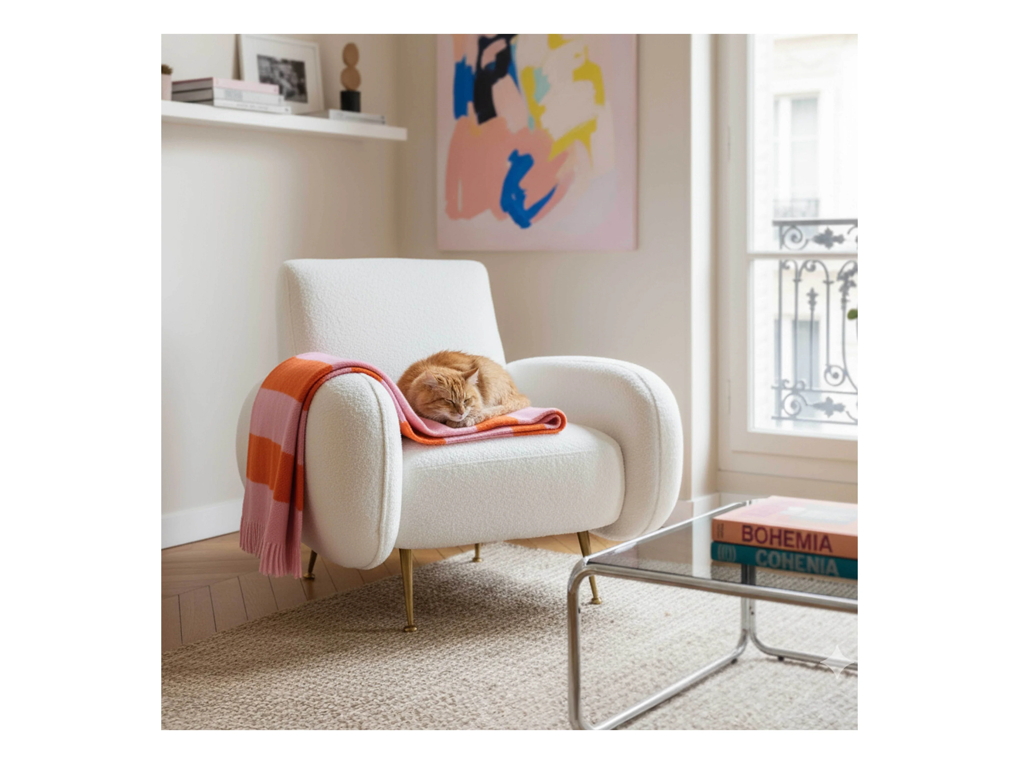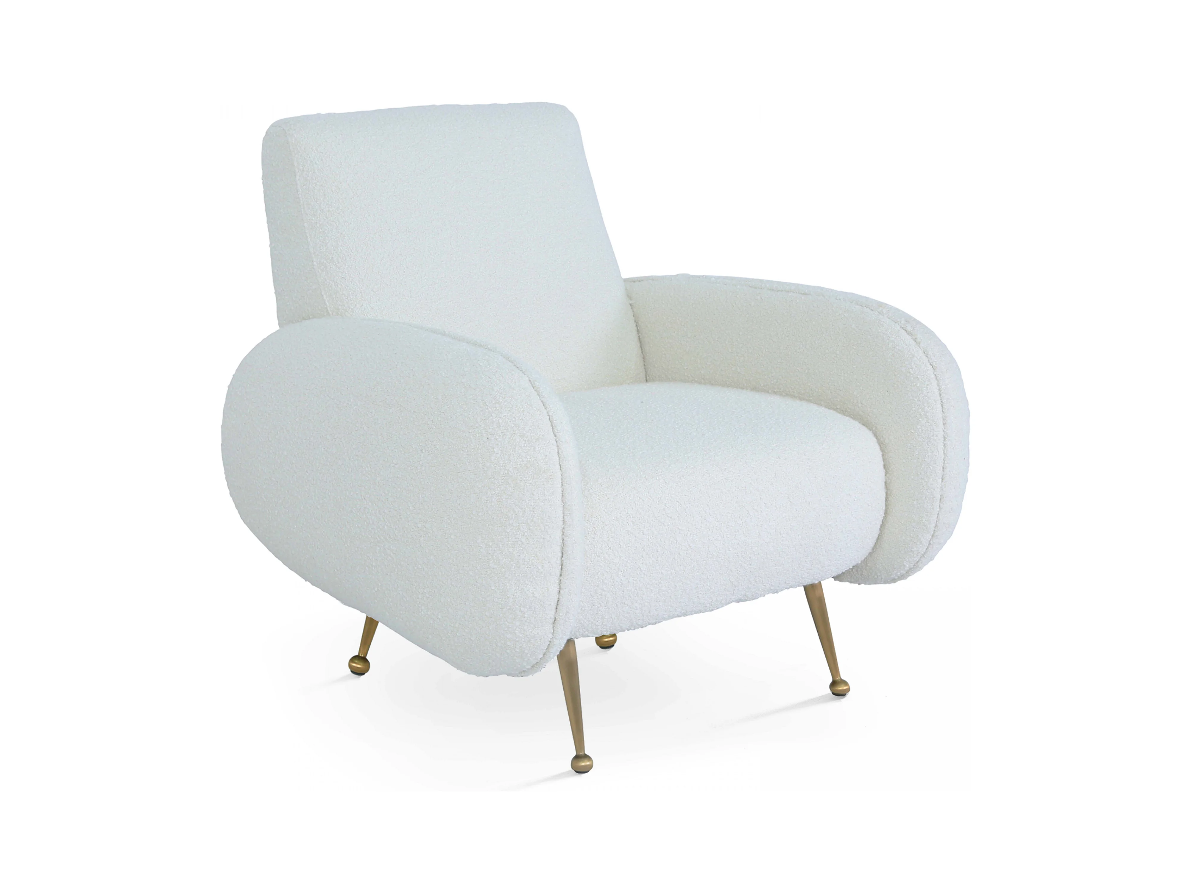 Fauteuil vintage en tissu bouclette blanc