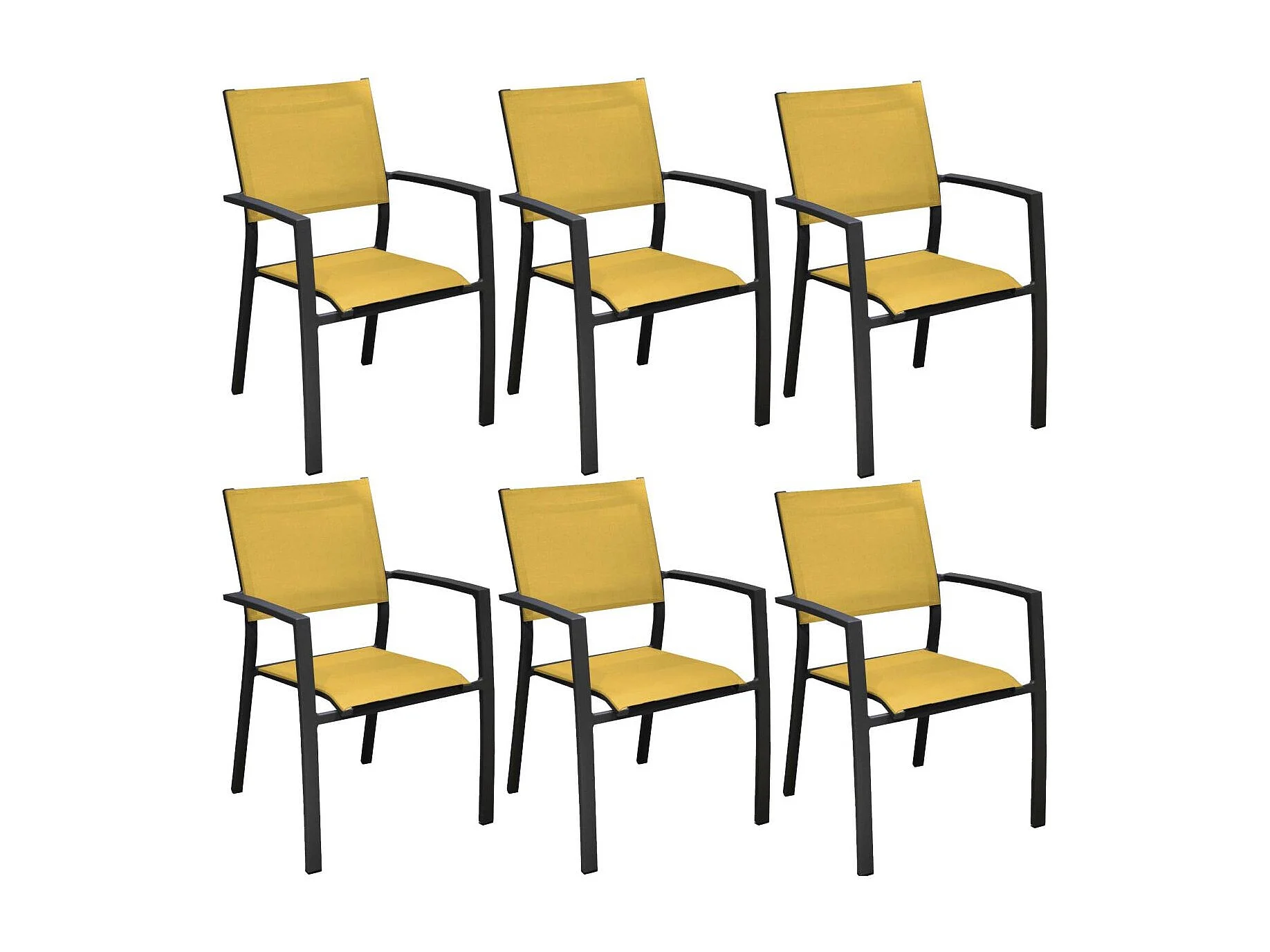 Fauteuils de jardin aluminium et toile Games (Lot de 6) Graphite, moutarde