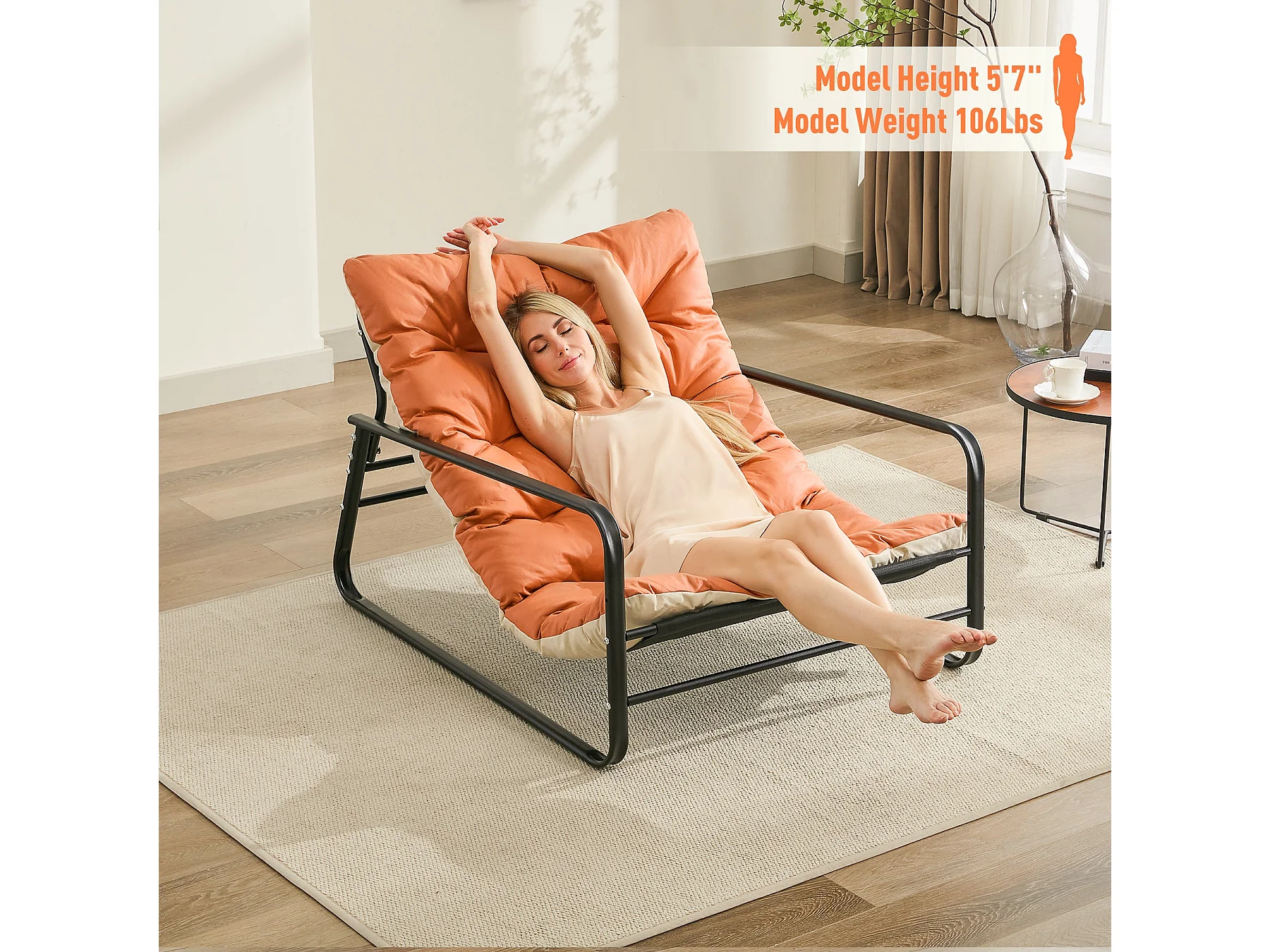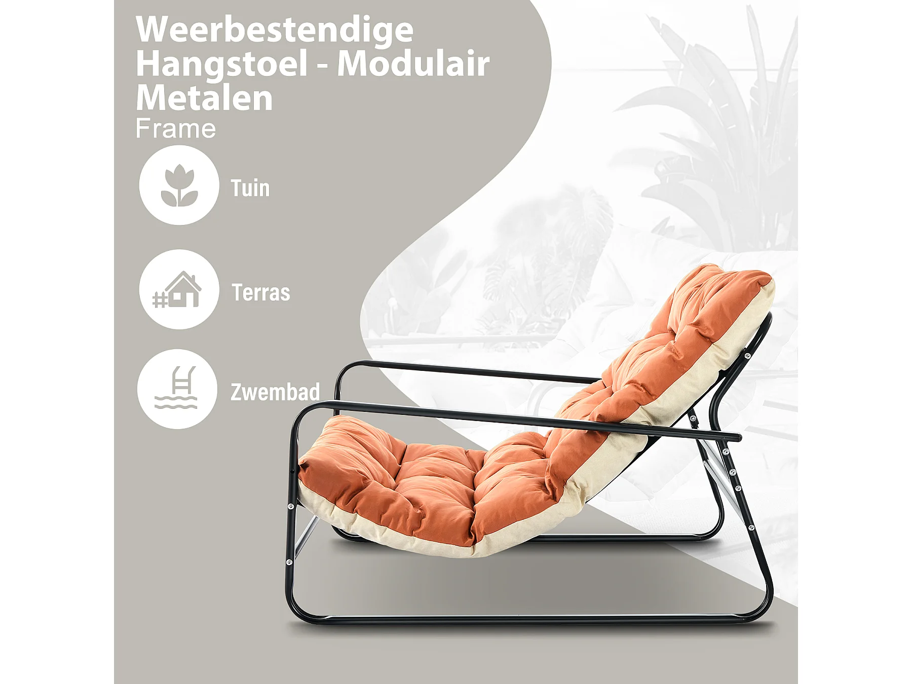 Fauteuils salon, relax, transat jardin, chaise longue balcon acier, 2 pers., extérieur, meuble terrasse (Orange+Beige)