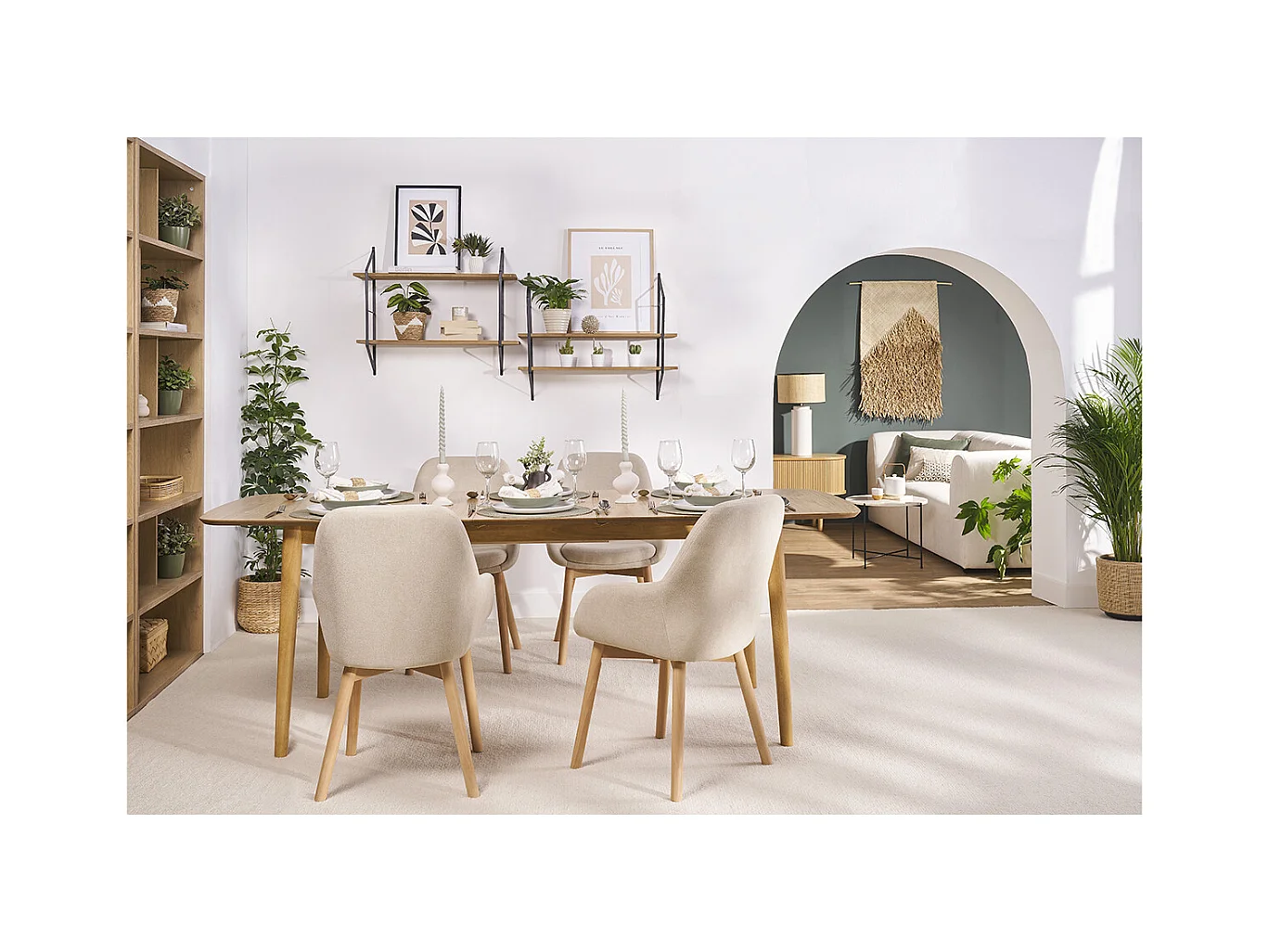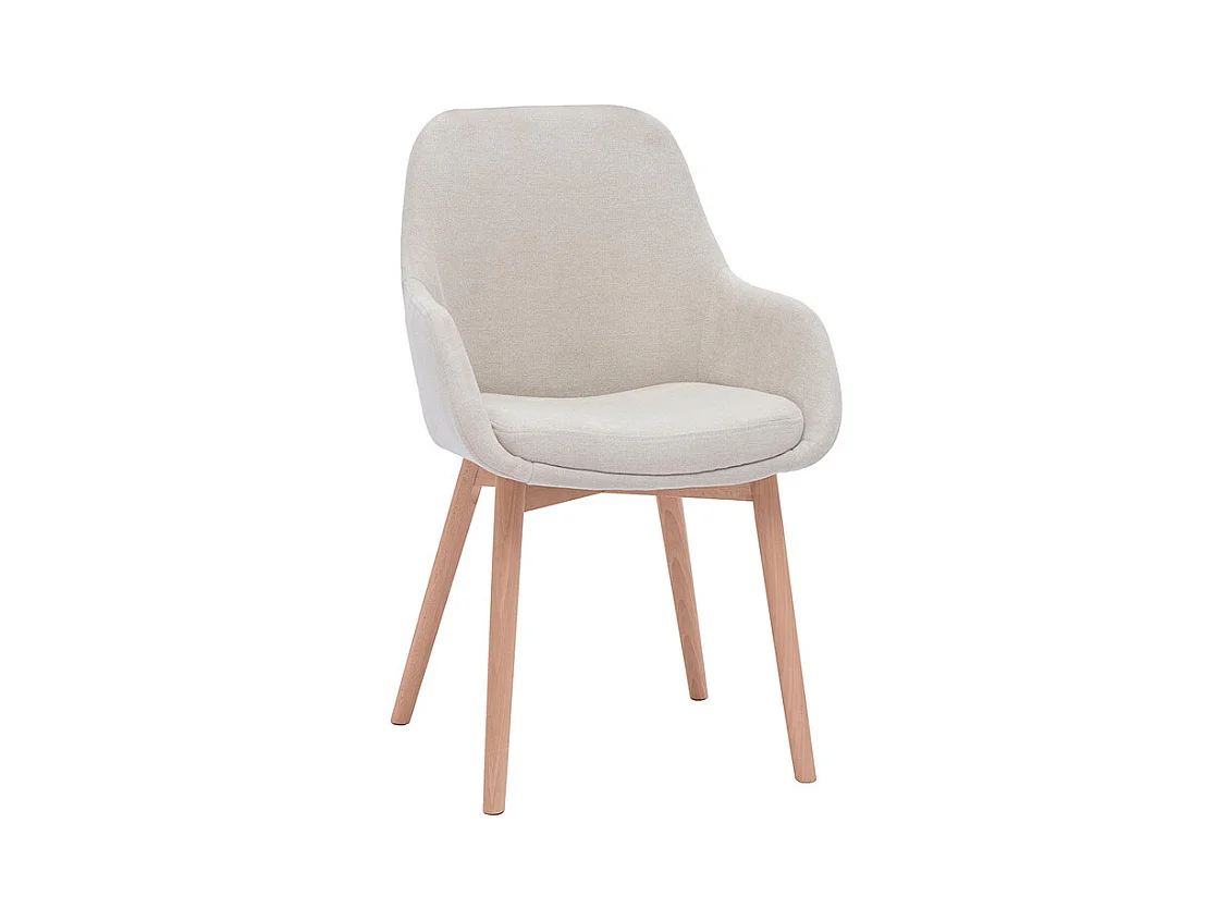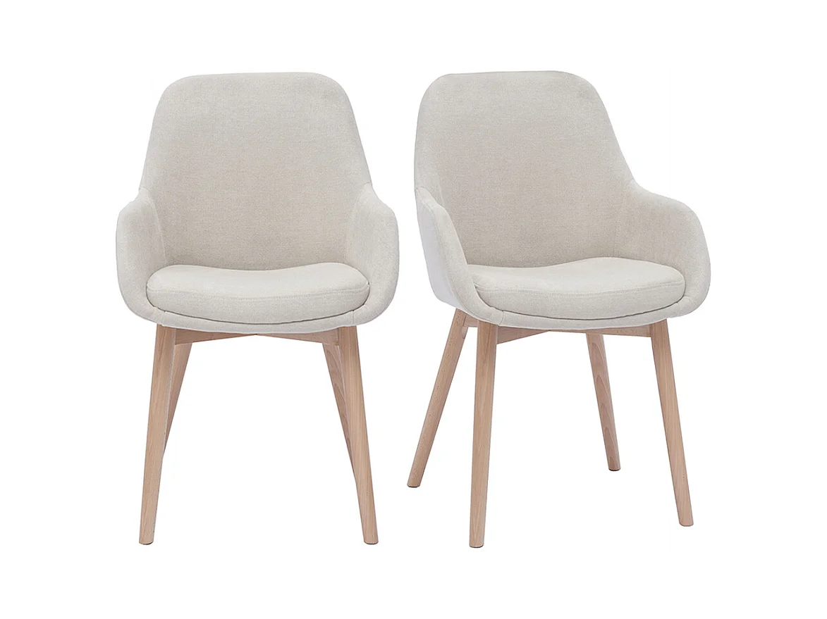 Fauteuils scandinaves en tissu effet velours beige et bois clair massif (lot de 2) HOLO
