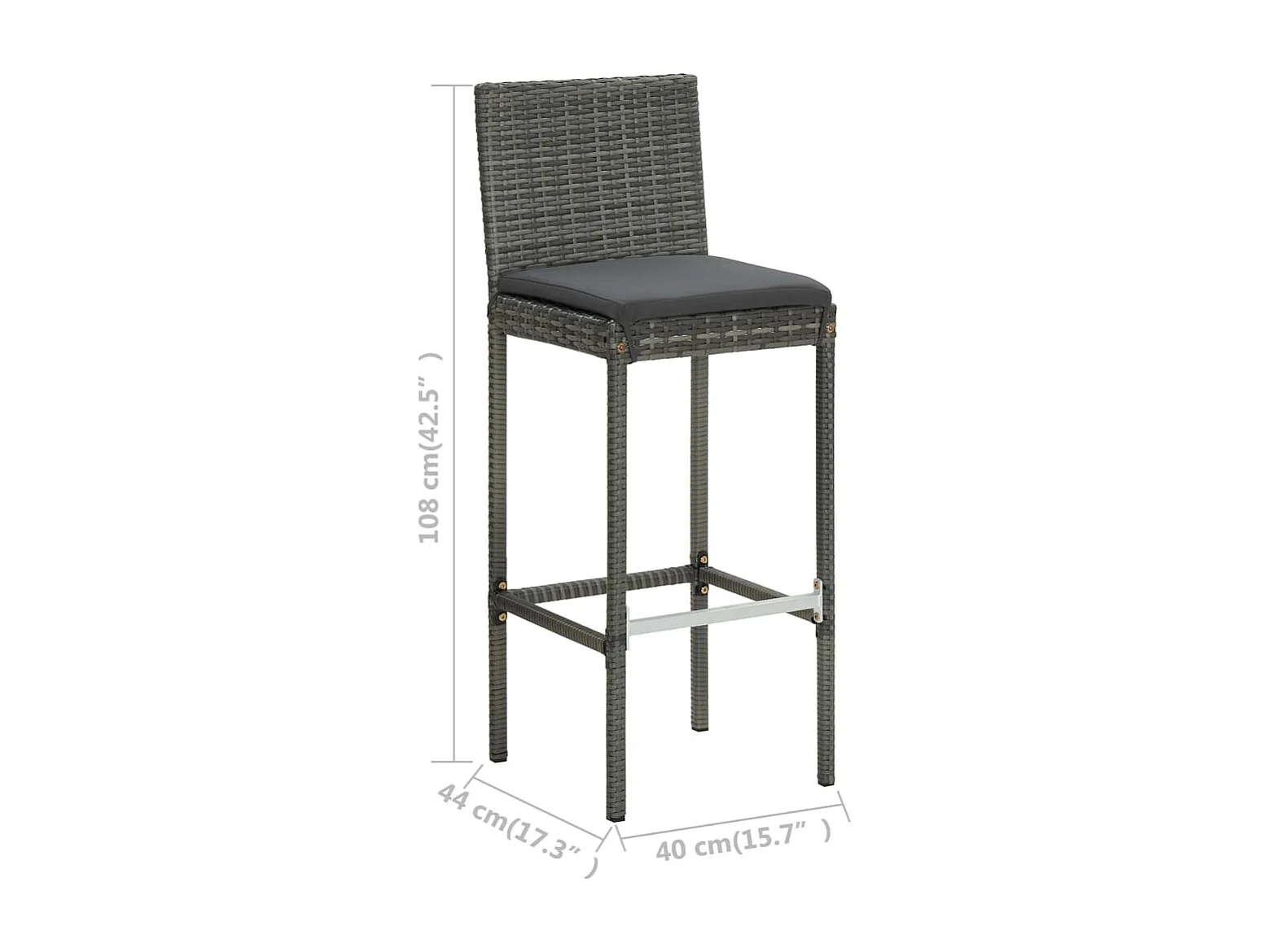 Fehmi Ensemble de bar de jardin 5 pcs et coussins Résine tressée Gris