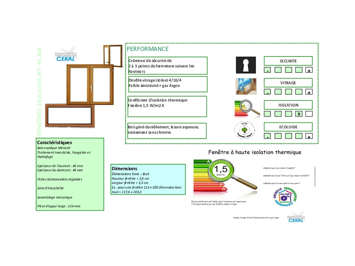 Fenetre Bois 1 Vantail H75 X L60 Tirant Gauche + Tapees Iso 120 (2 De 1,9m) + Poignee Gd Menuiseries