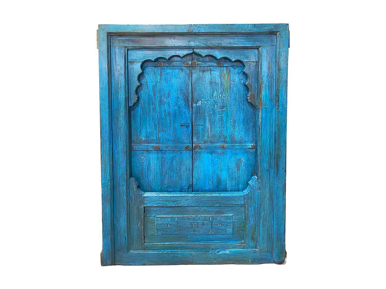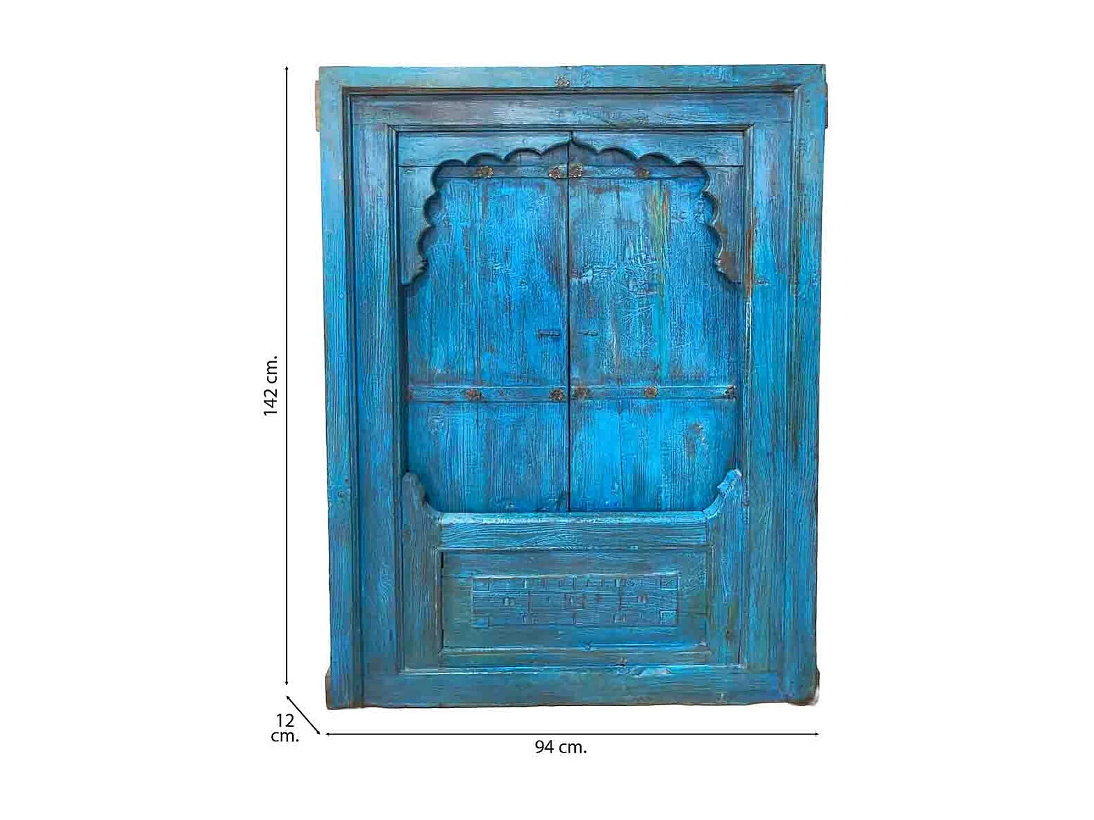 Fenêtre en bois bleu faite main 94 x 12 x 142 cm
