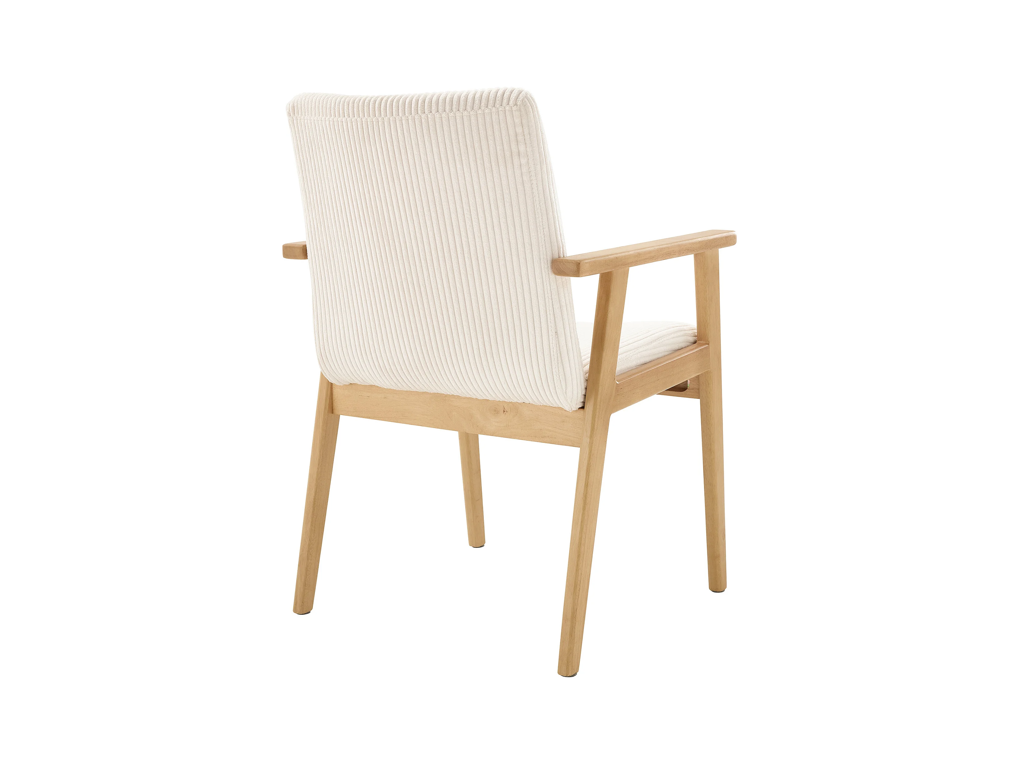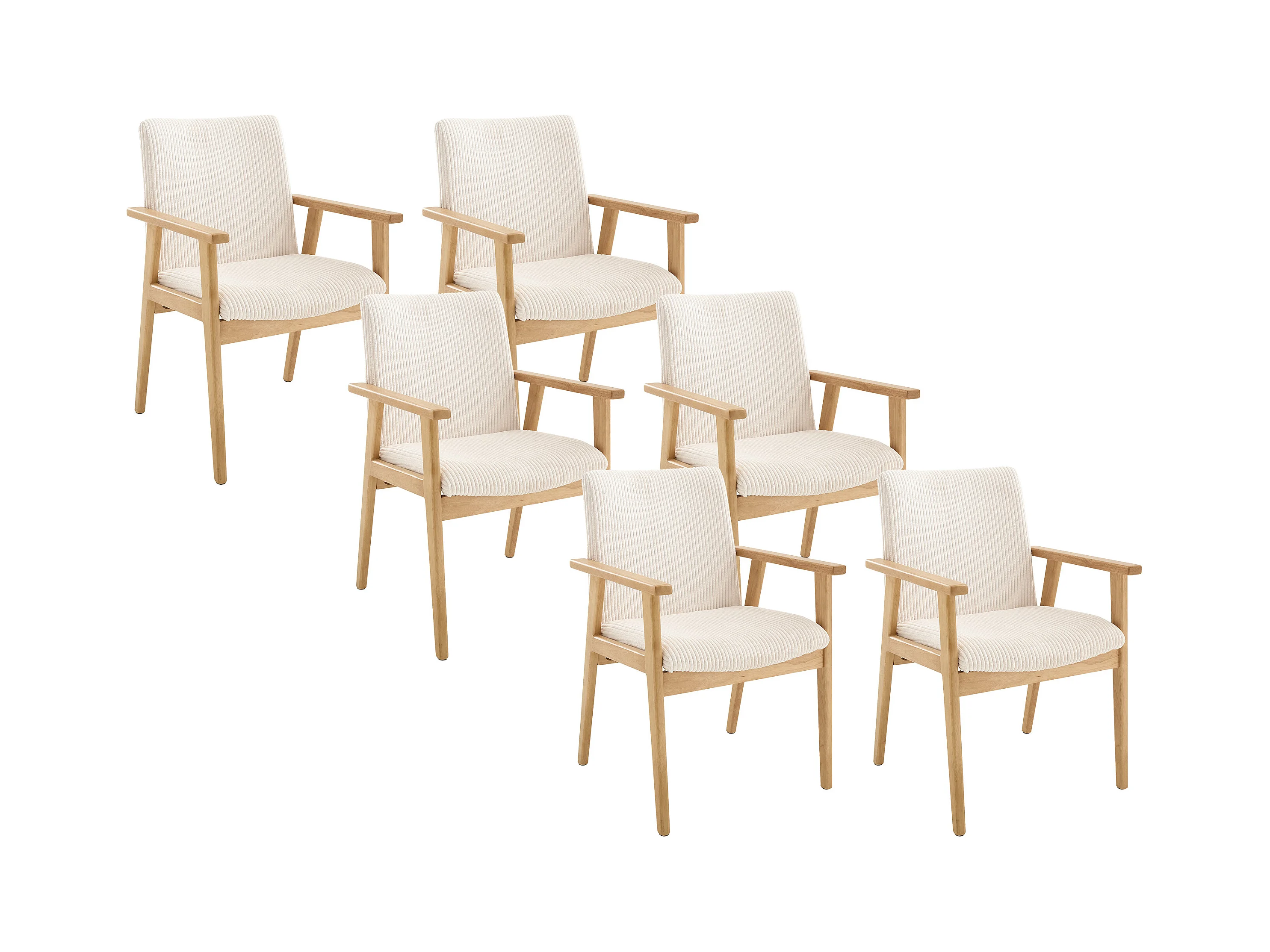Lot de 6 chaises avec accoudoirs en velours côtelé et bois d'hévéa - Crème - FILDON