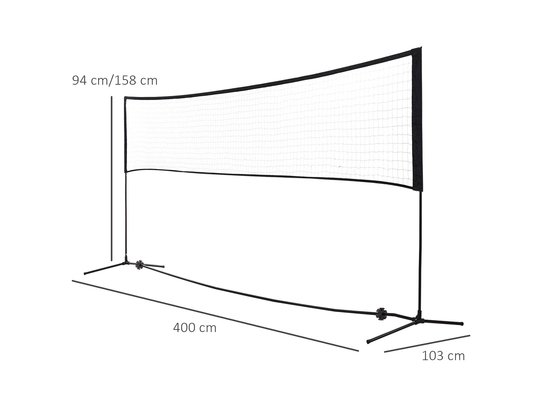 Filet de badminton réglable et portable, en métal et polyester, avec hauteur ajustable, idéal pour tennis et volley-ball (400x103x94-158 cm)