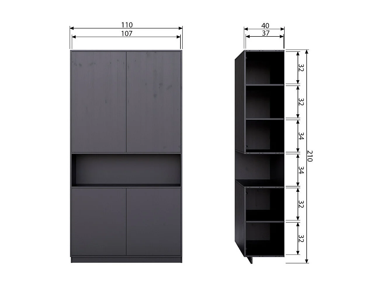 Finca - Meuble de rangement en bois massif de pin L110cm - Noir