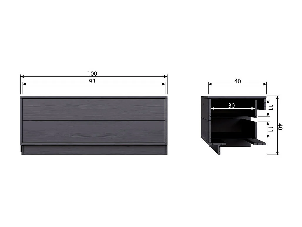 Finca - Meuble TV en bois massif de pin L100cm - Noir