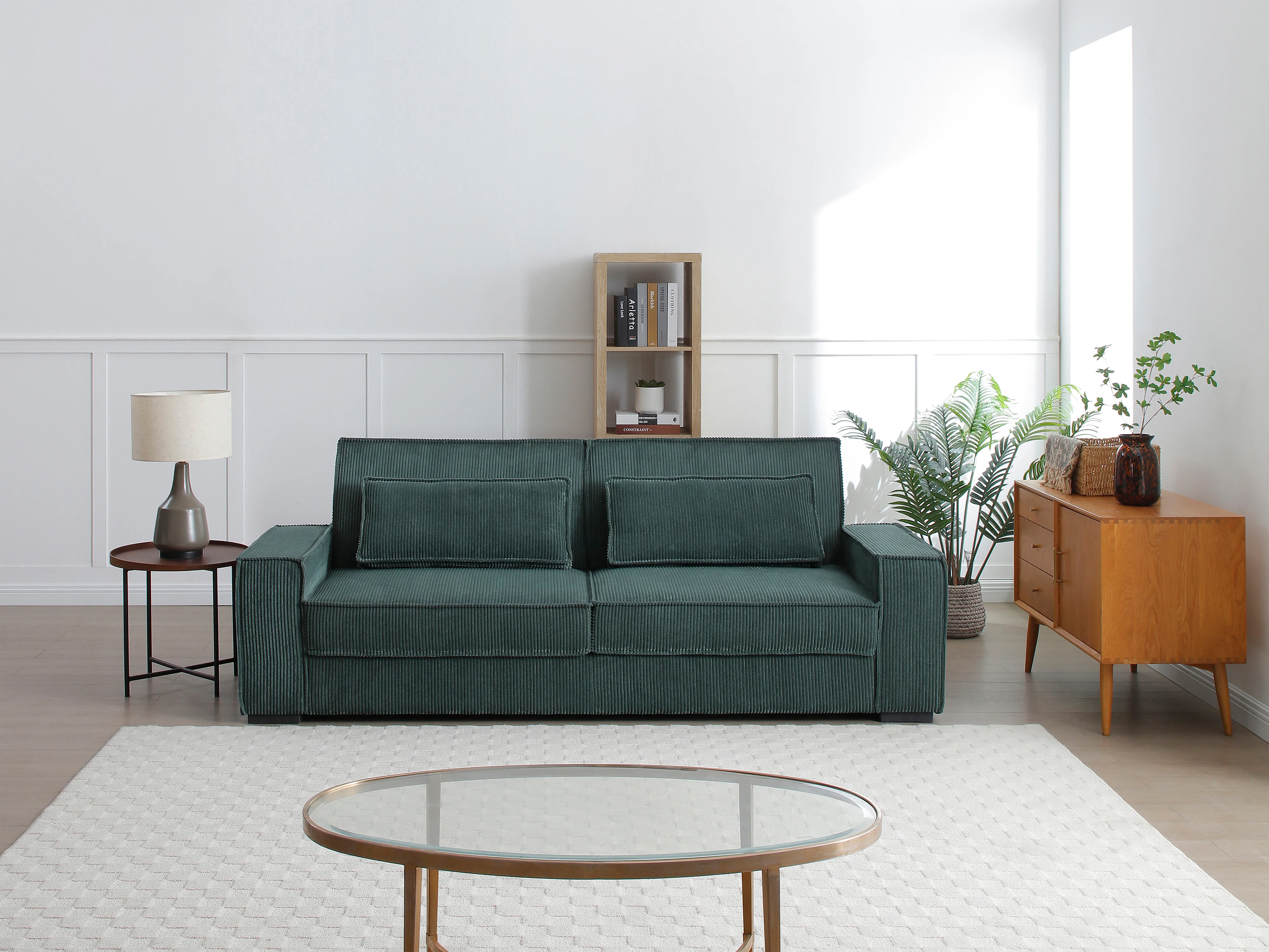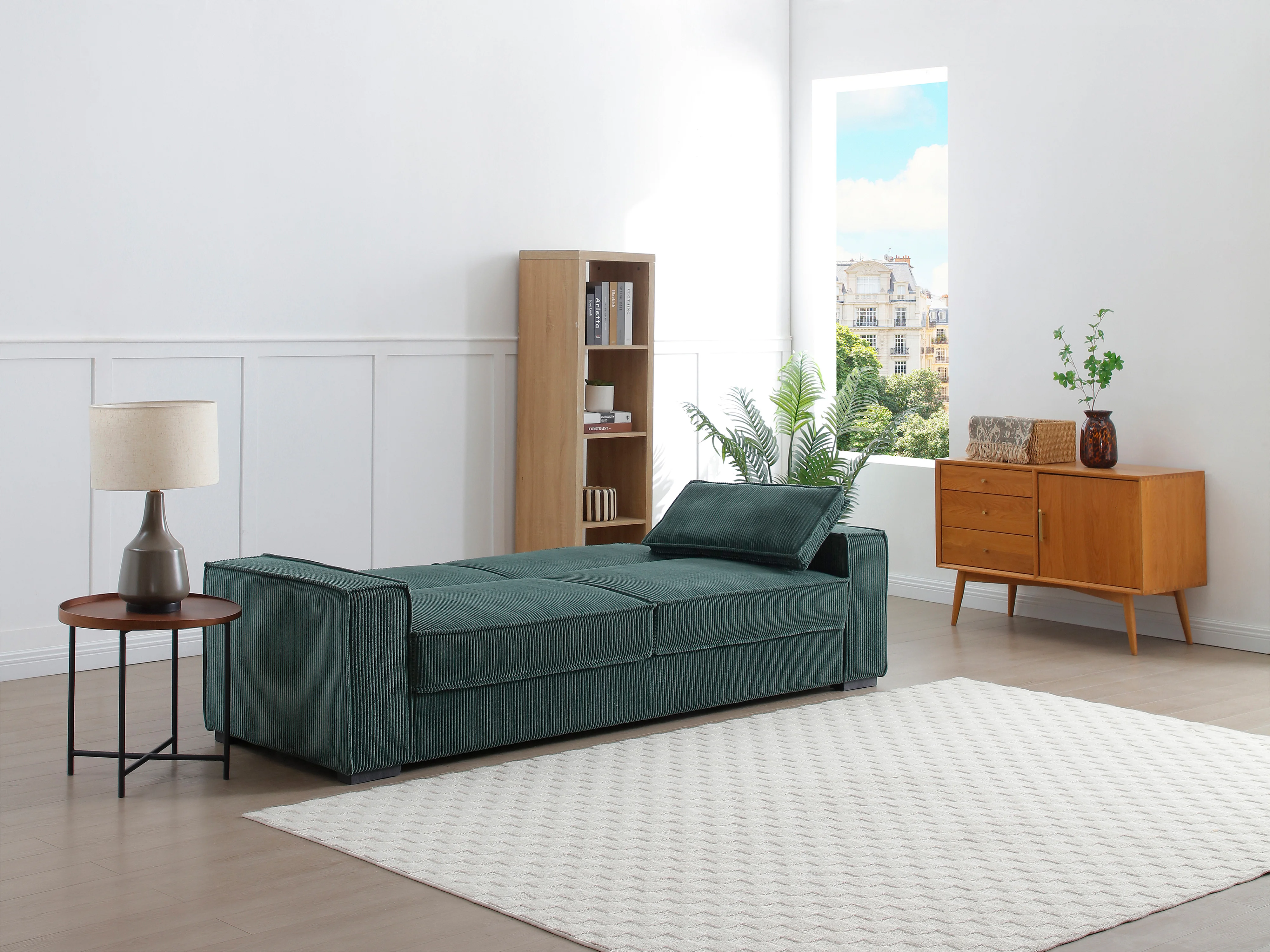 Canapé 3 places convertible en velours côtelé vert sapin FINORO