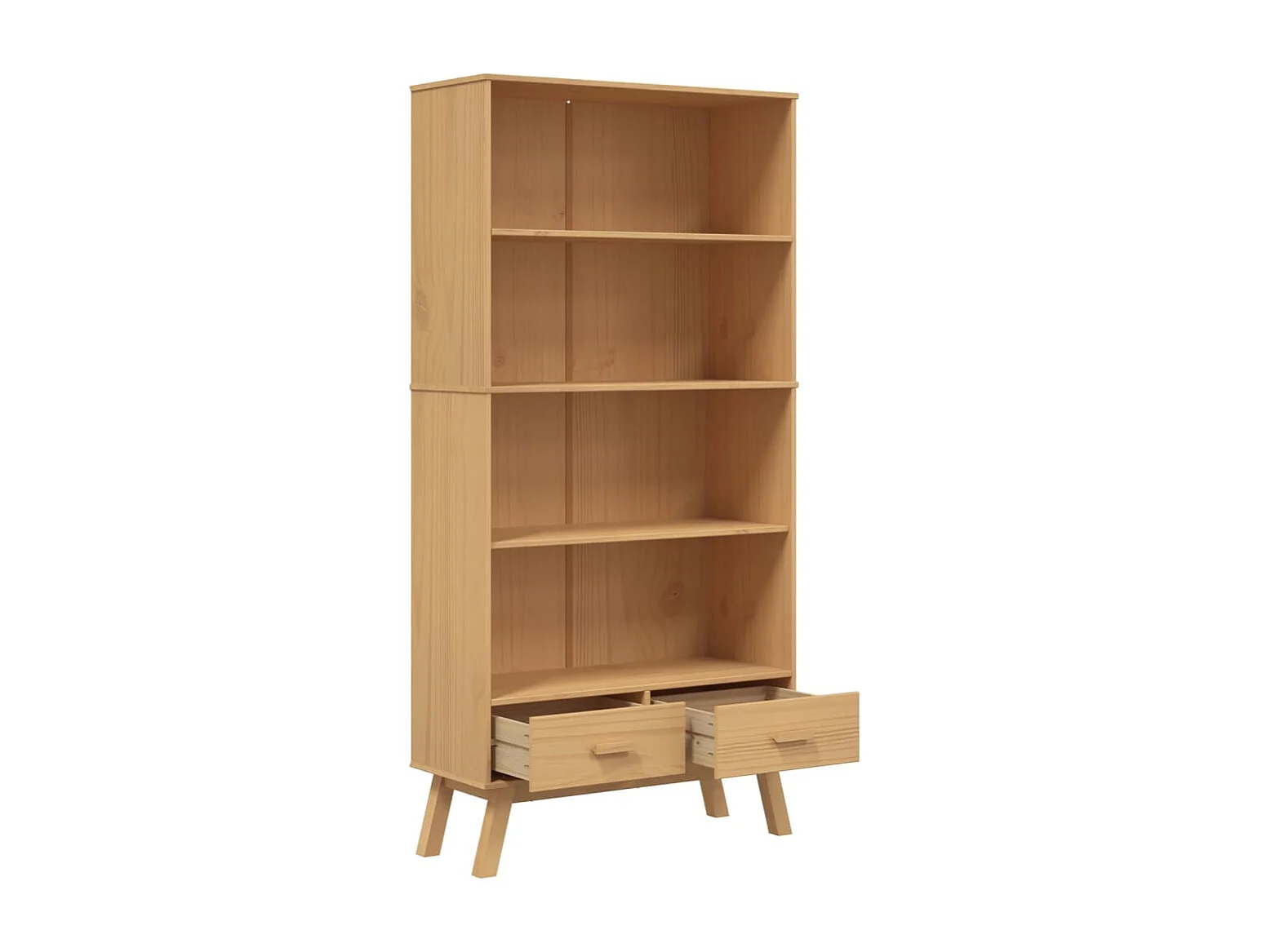 Fintra Bibliothèque à 4 niveaux OLDEN marron bois de pin massif