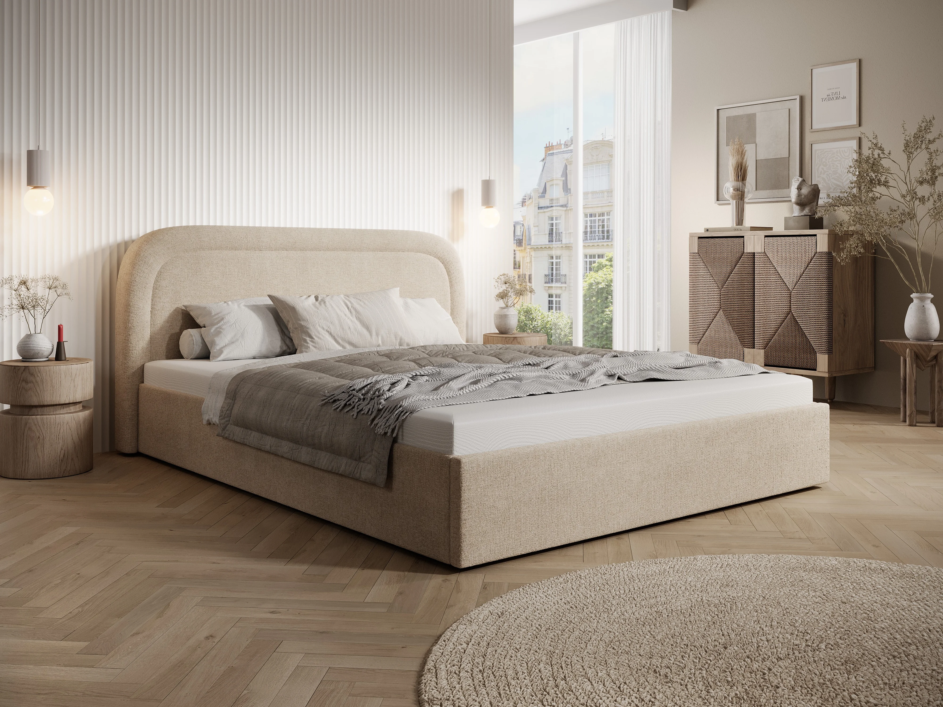 Lit coffre 160 x 200 cm - Tissu chiné - Beige - FIREZA II