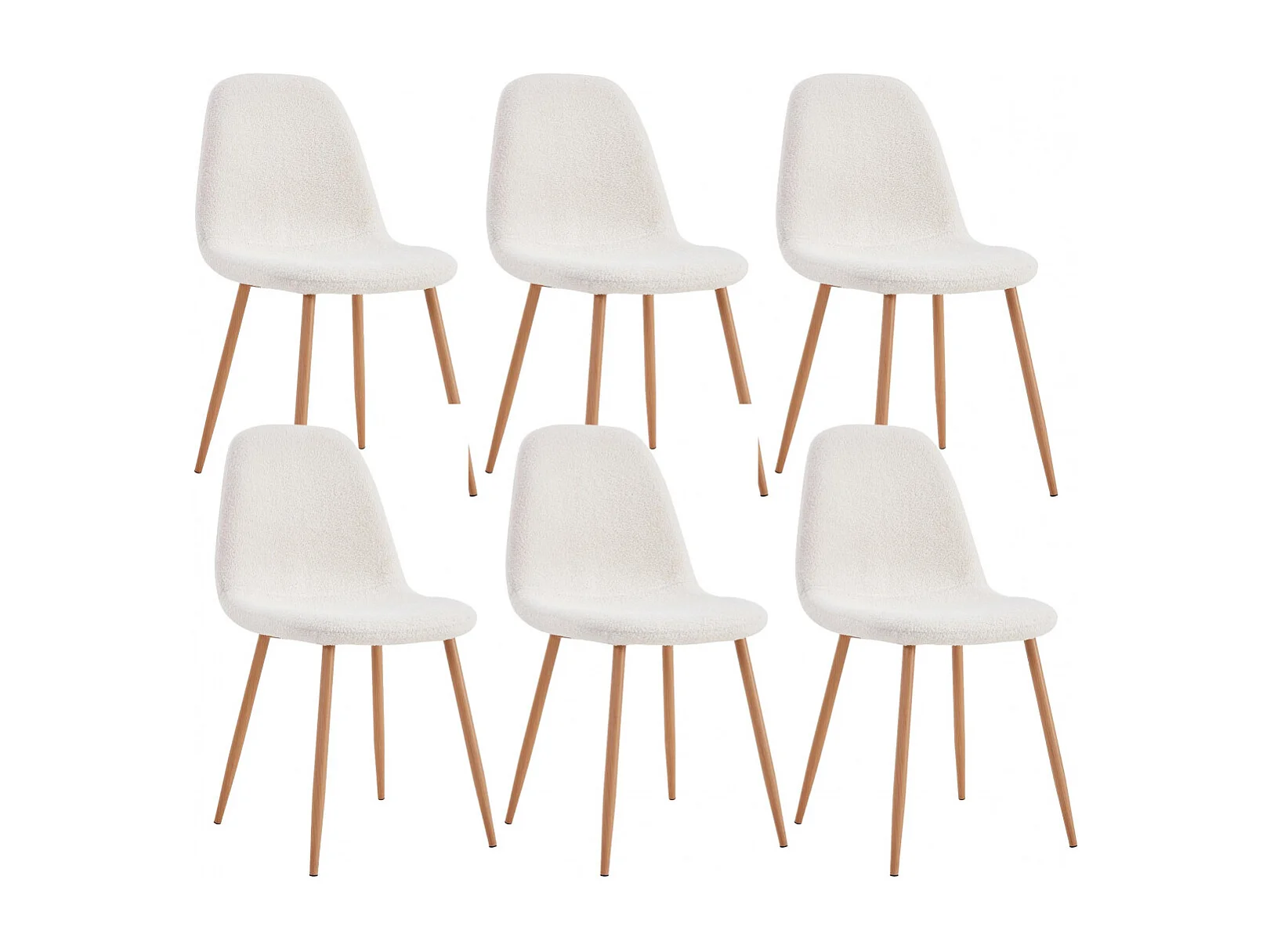 FJARD - Lot de 6 Chaises Blanches Tissu Bouclettes