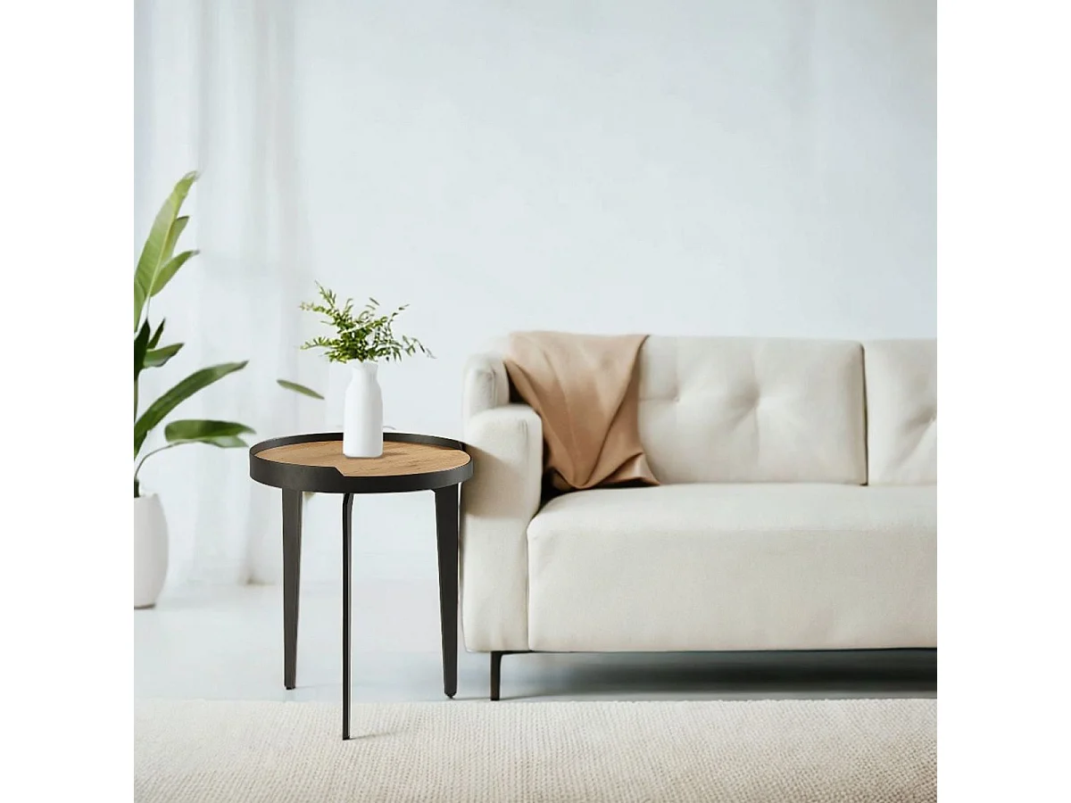 FLECHER - Bout de Canapé Plaqué Chêne Cadre Métal Gris Antrhacite