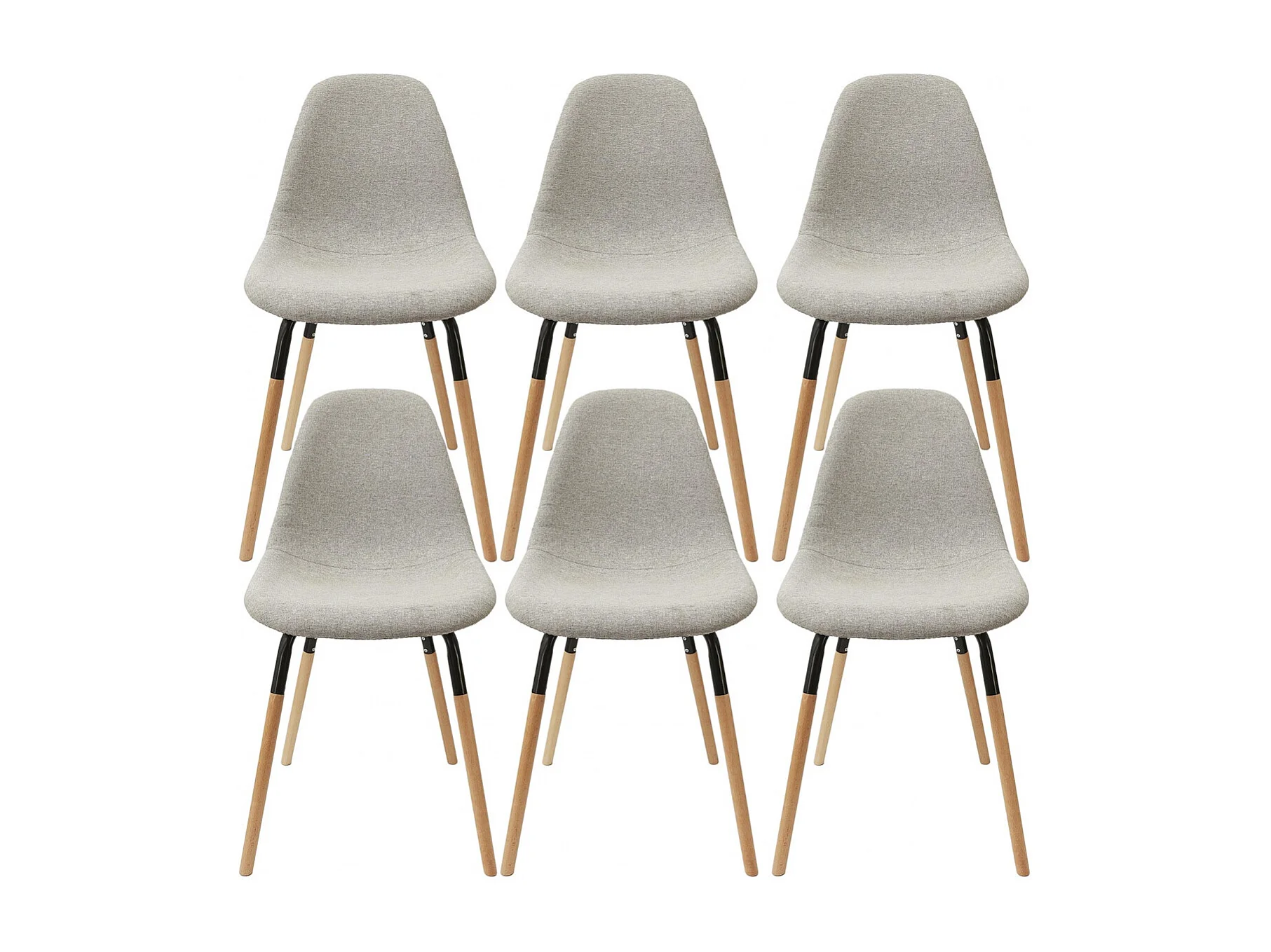 FLUK - Lot de 6 Chaises Tissu Gris Chiné Clair et Bois
