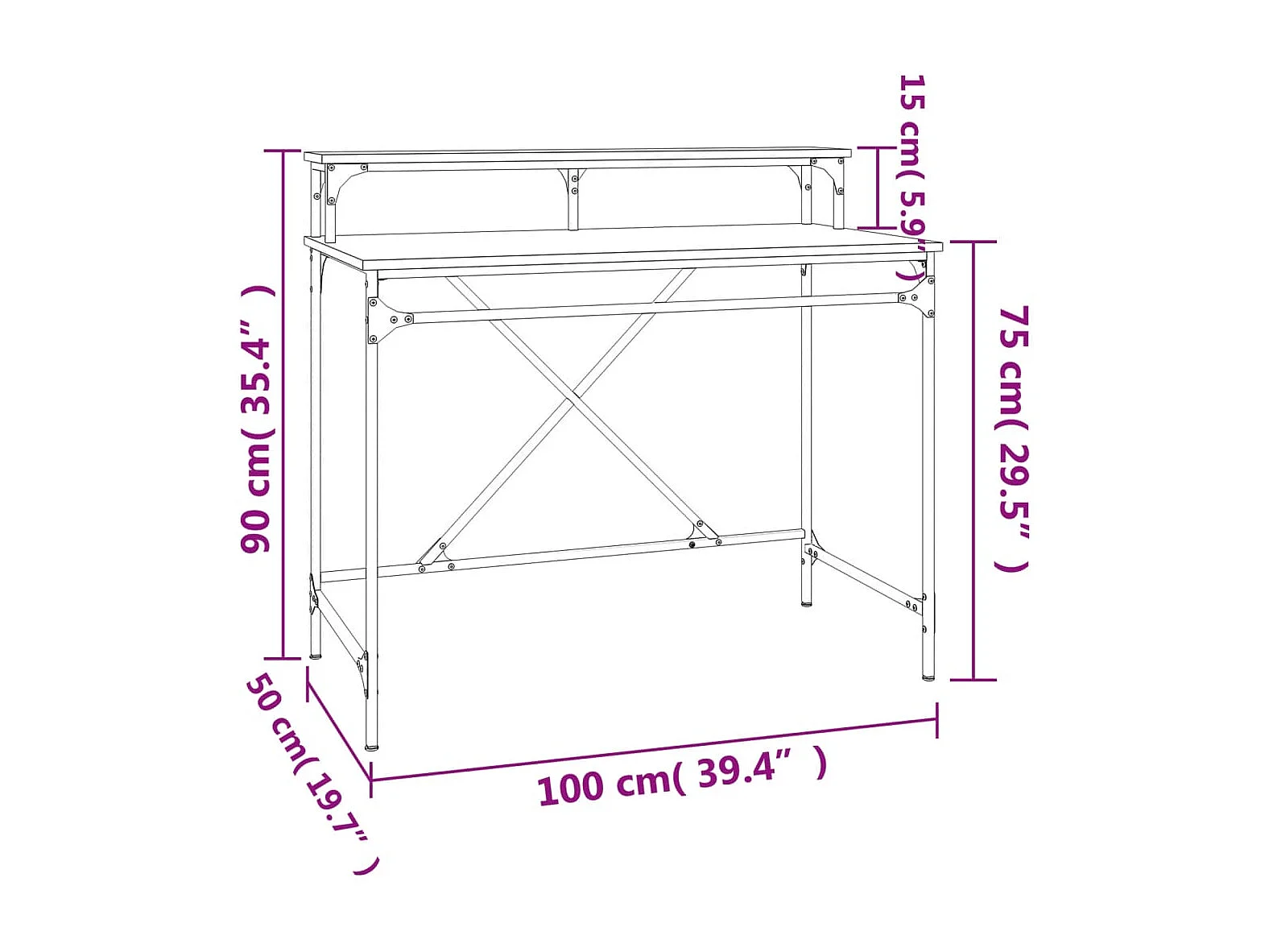 Fole Bureau chêne fumé 100x50x90 cm bois d'ingénierie et fer
