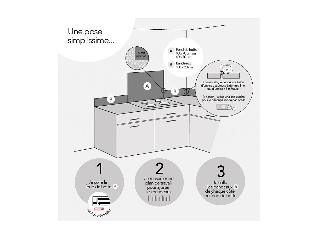 Fond de hotte adhésif en aluminium effet carreaux de ciment gris - 70x60 cm