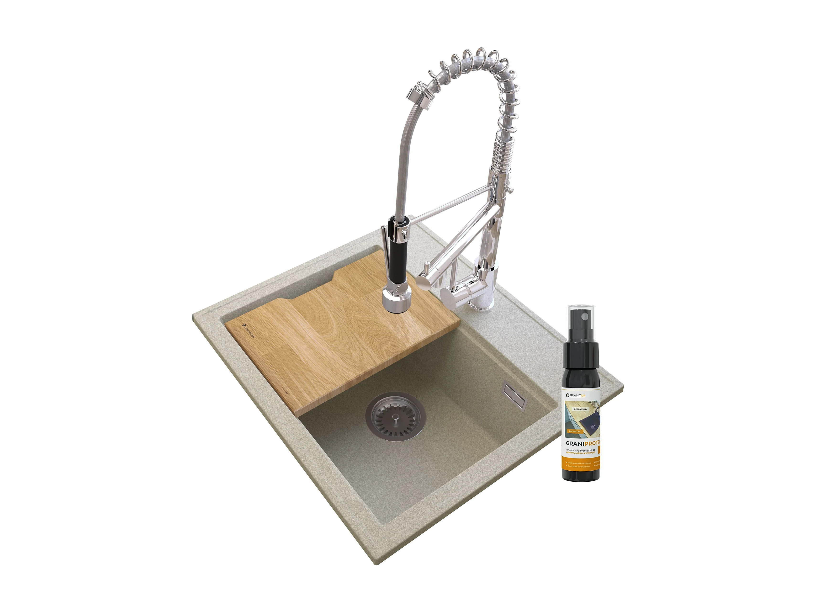 FOXAL ÉVIER GRANIT BEIGE +SPIRAL DUO MITIGEUR CHROMÉ
