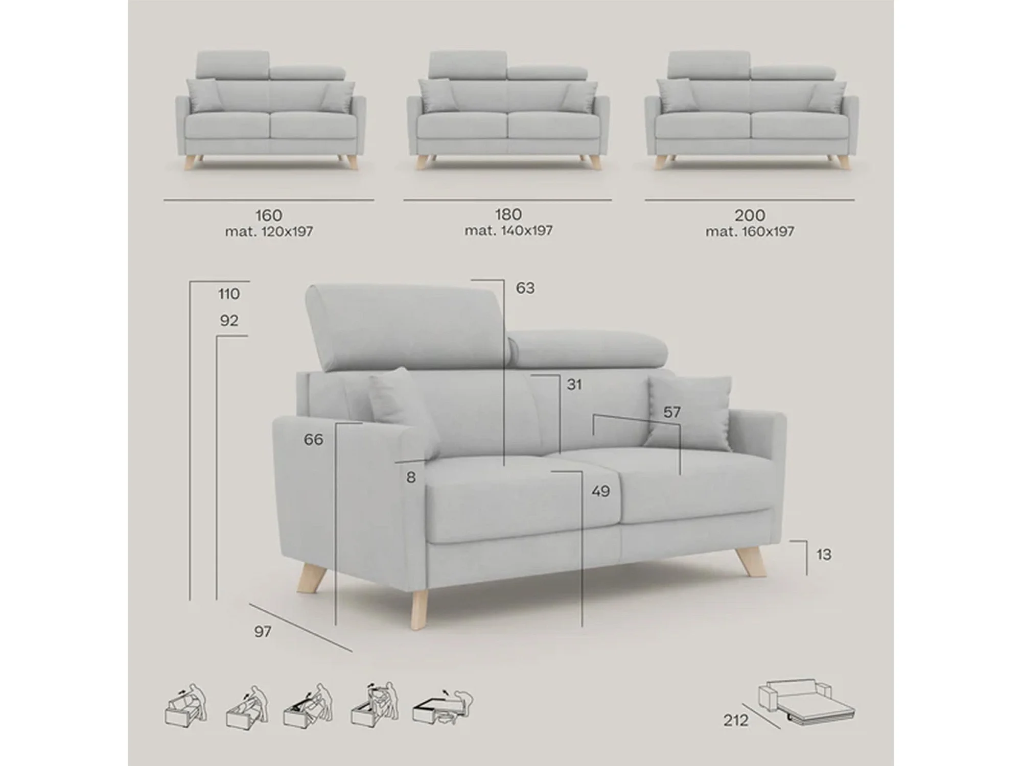 Francy Canapé convertible avec têtières réglables en tissu T17 180 cm (mat. 140x197) Rouge