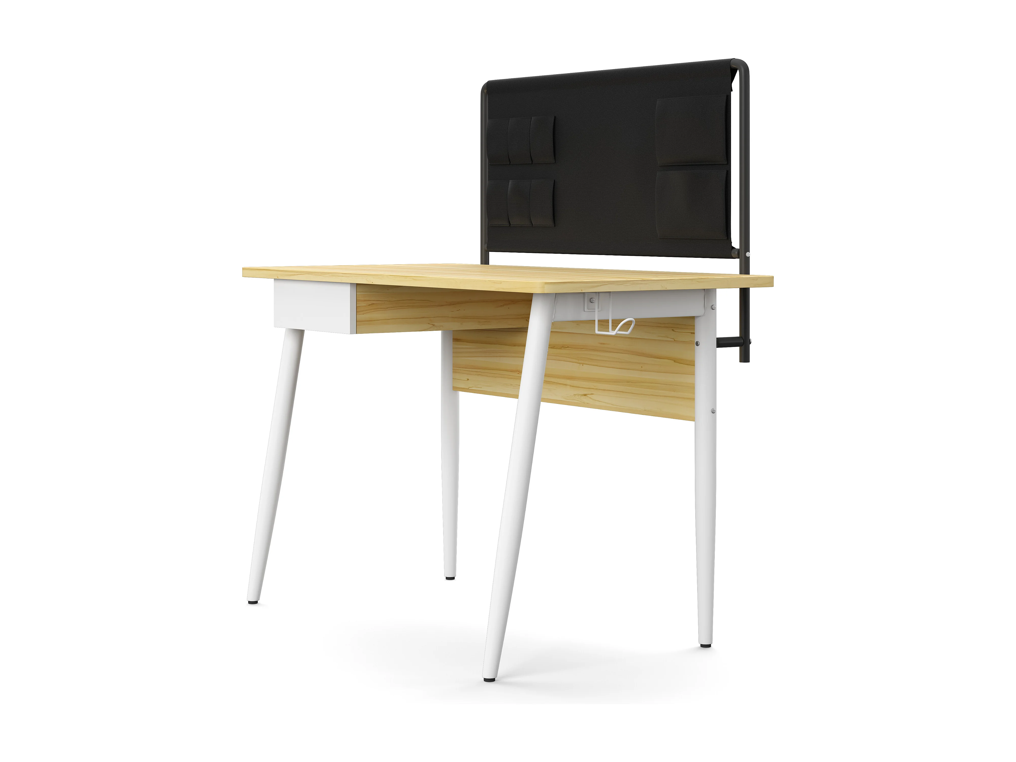 Freemont | Bureau en blanc avec rangement en tissu noir