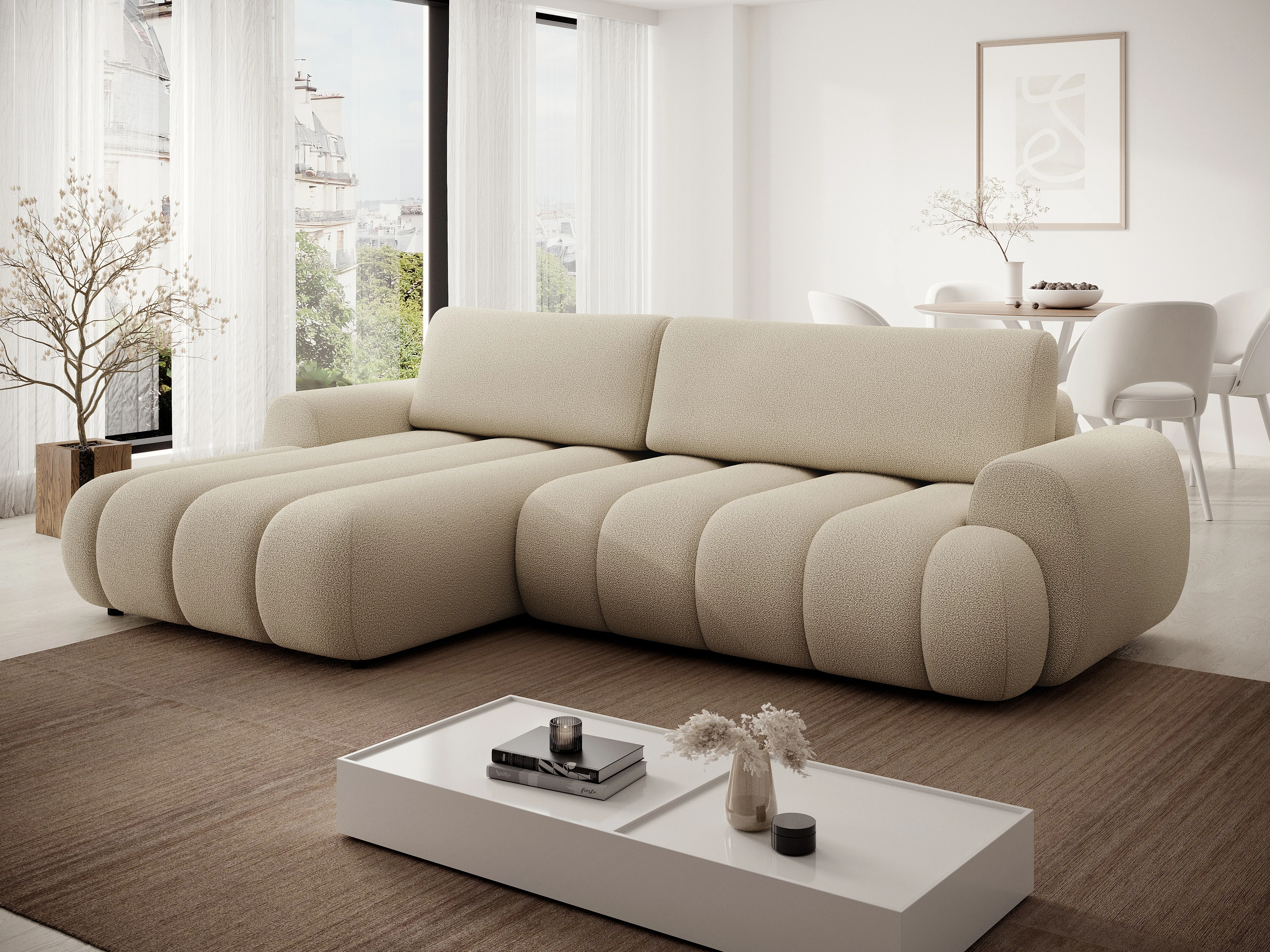 Canapé d'angle gauche convertible en tissu beige FRIDORA