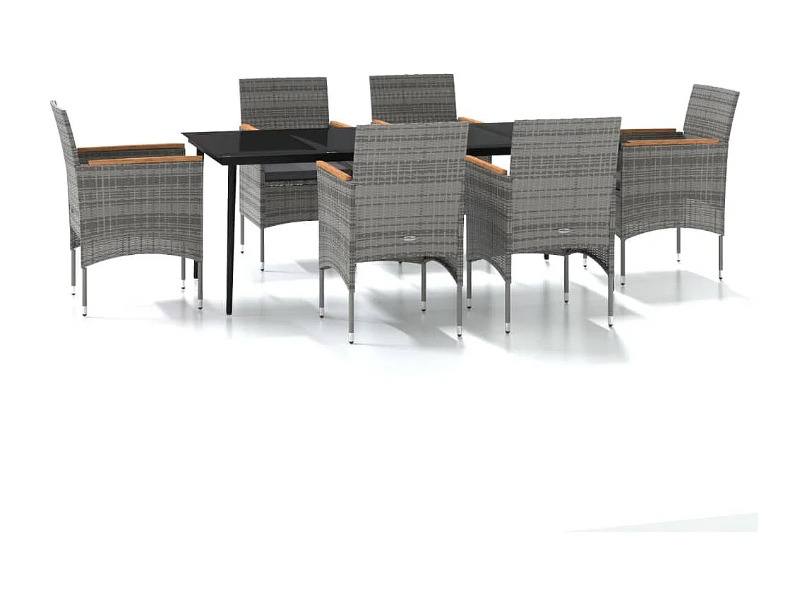 Frynjal Ensemble à manger de jardin coussins 7pcs Gris et noir