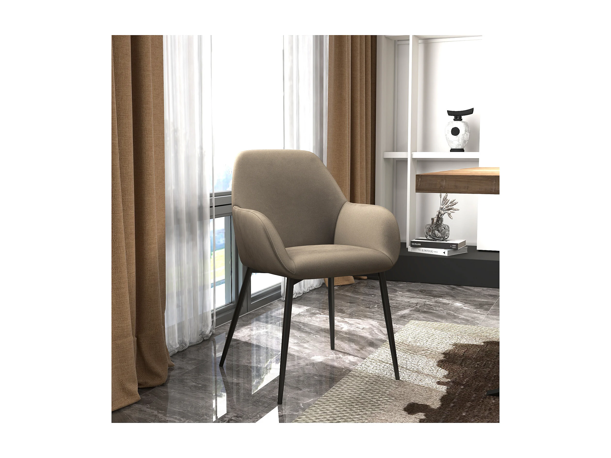 GABIN-Poltrona da tavolo marrone e metallo nero (x2)