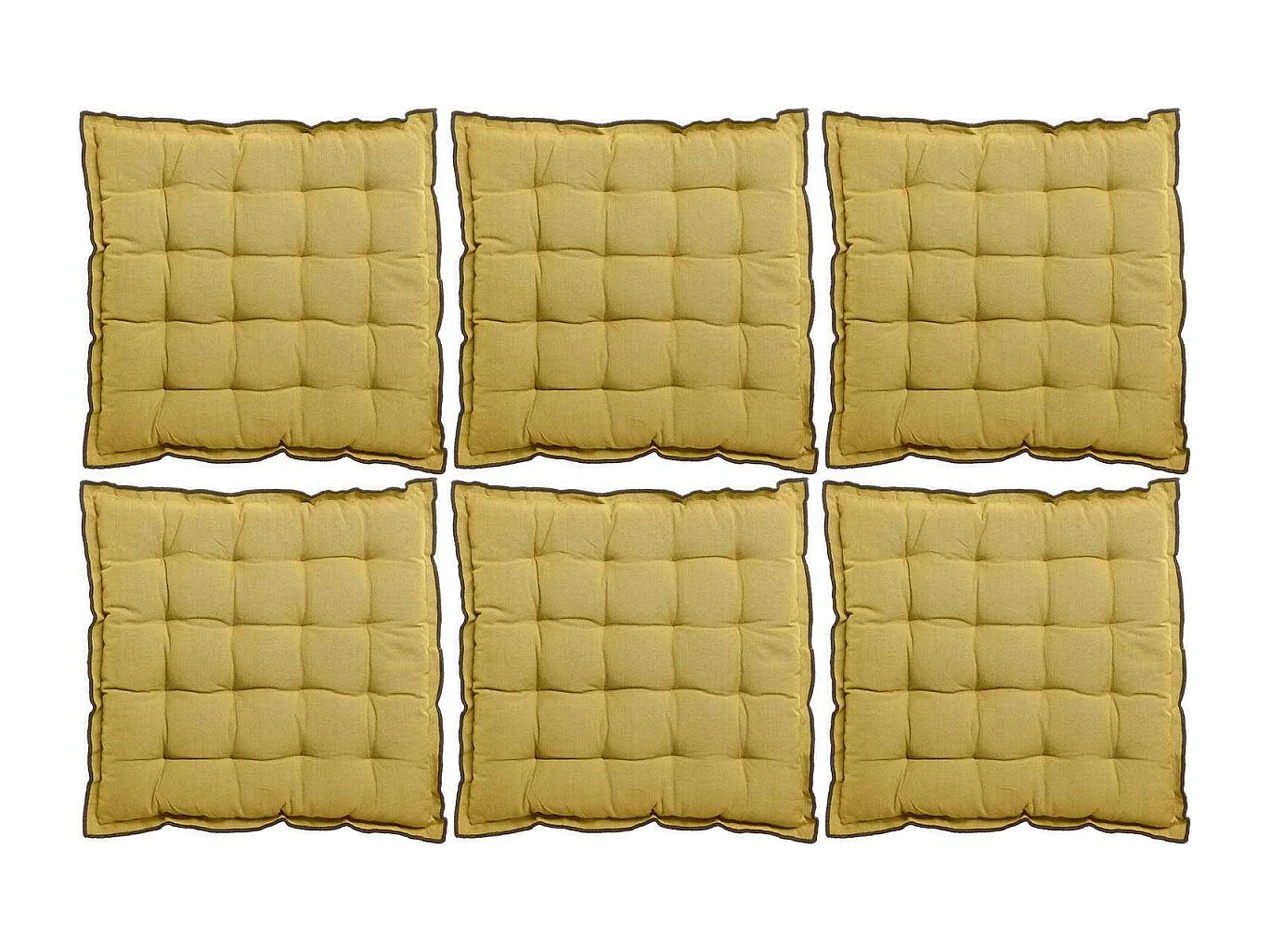 Lot de 6 galettes piquées, carré 38x38cm, jaune moutarde, avec nouettes, 100% coton, collection Panama