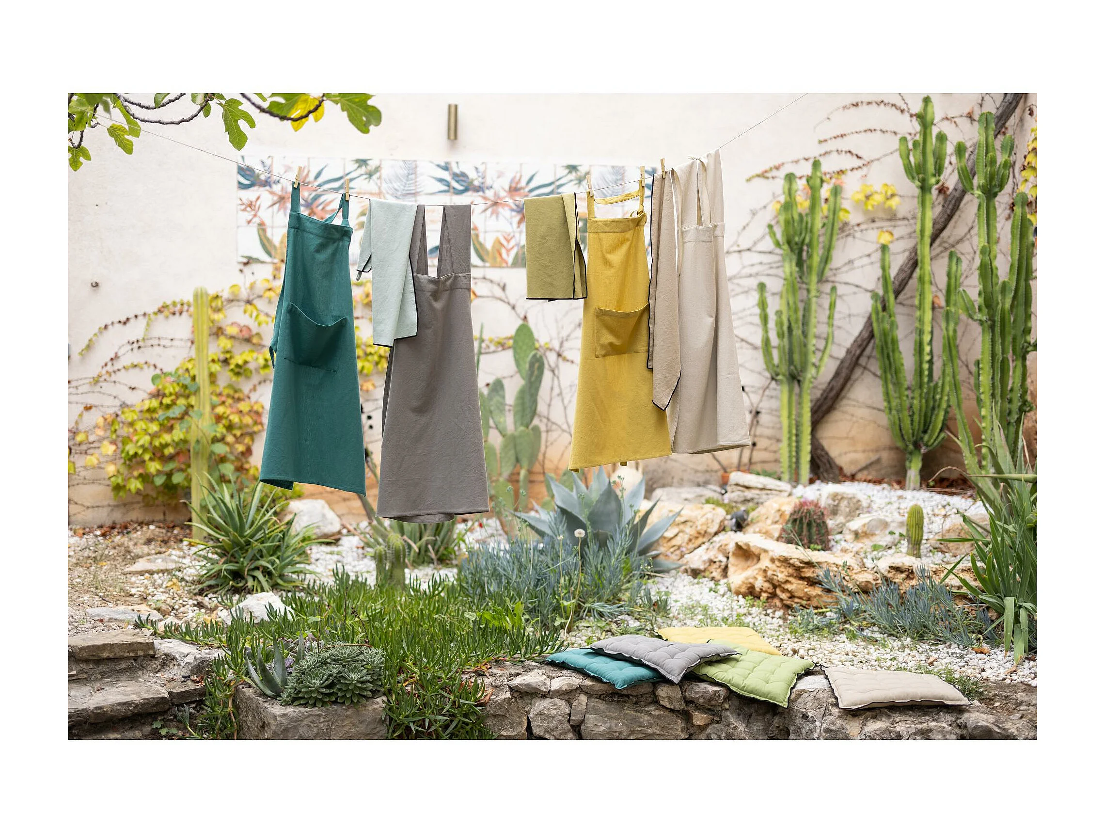 Lot de 6 galettes piquées, carré 38x38cm, vert argile, avec nouettes, 100% coton, collection Panama