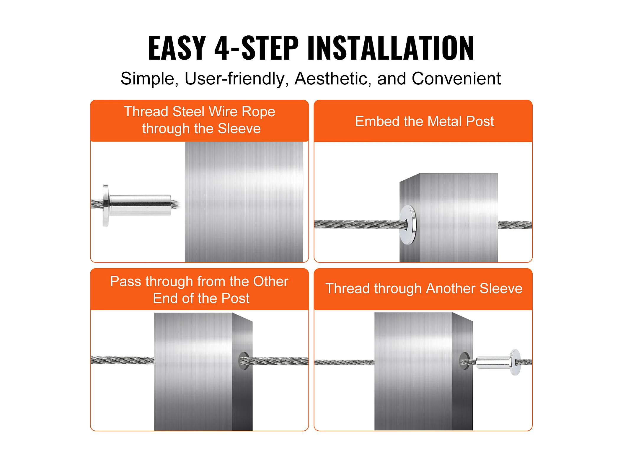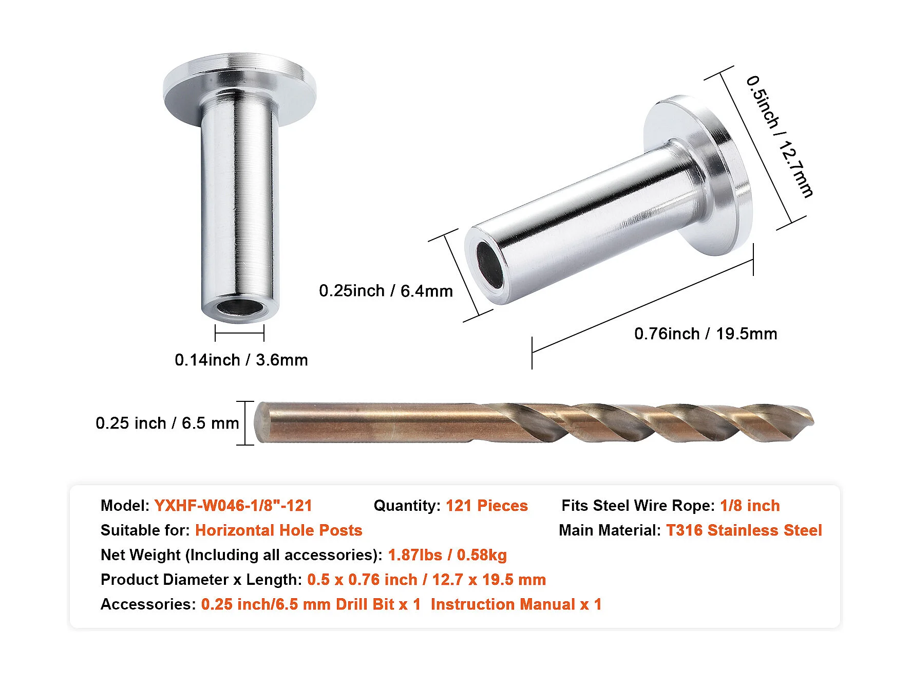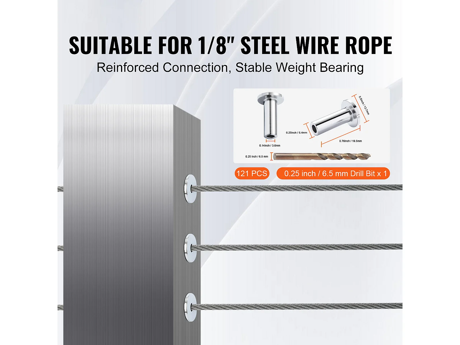 Garde-corps SucceBuy Lot de 121 Manchons de Protection en Acier Inoxydable T316 pour Garde-corps en Câble Métallique de 3,2 mm