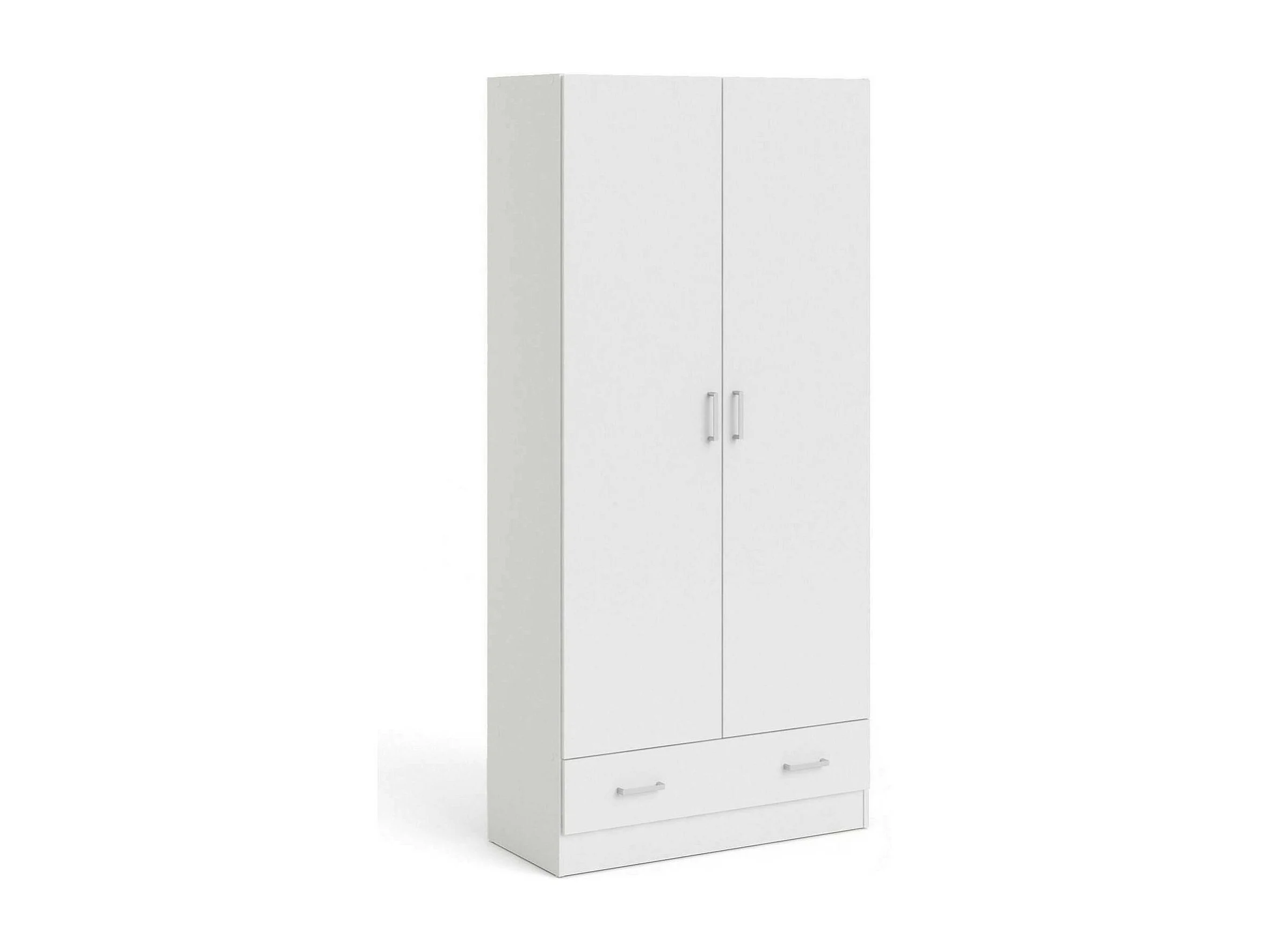 Garde-robe 2 portes Amylya, Meubles de chambre, Penderie de plain-pied, Placard à vêtements, 79x36 h170 cm, Blanc
