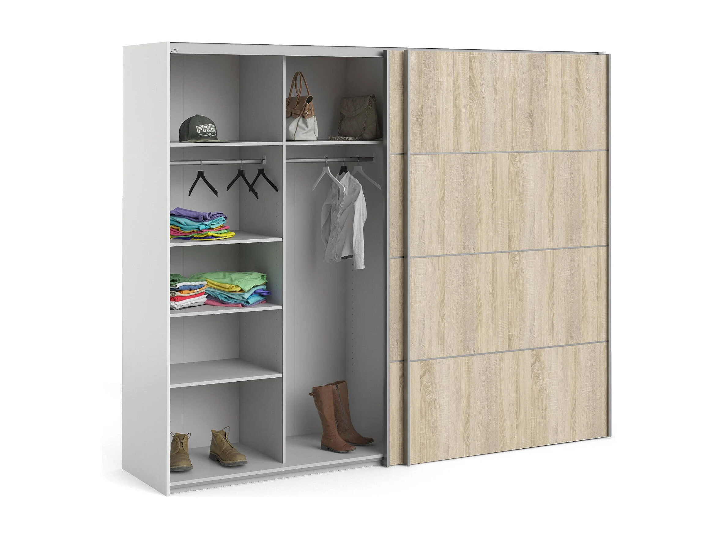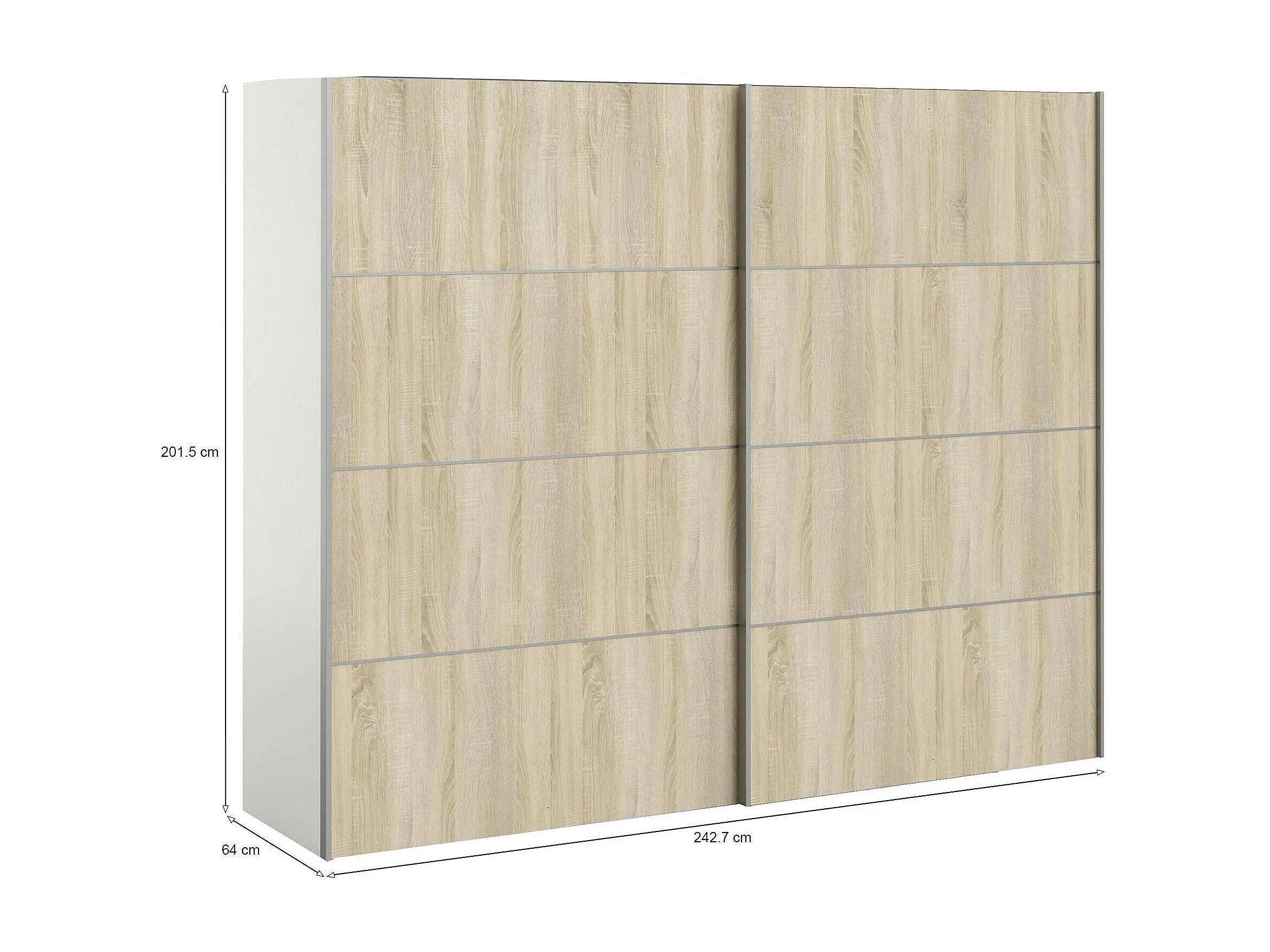 Garde-robe 2 portes Avelengo, Meubles de chambre, Penderie de plain-pied, Placard à vêtements, 243x64 h202 cm, Chêne et Blanc