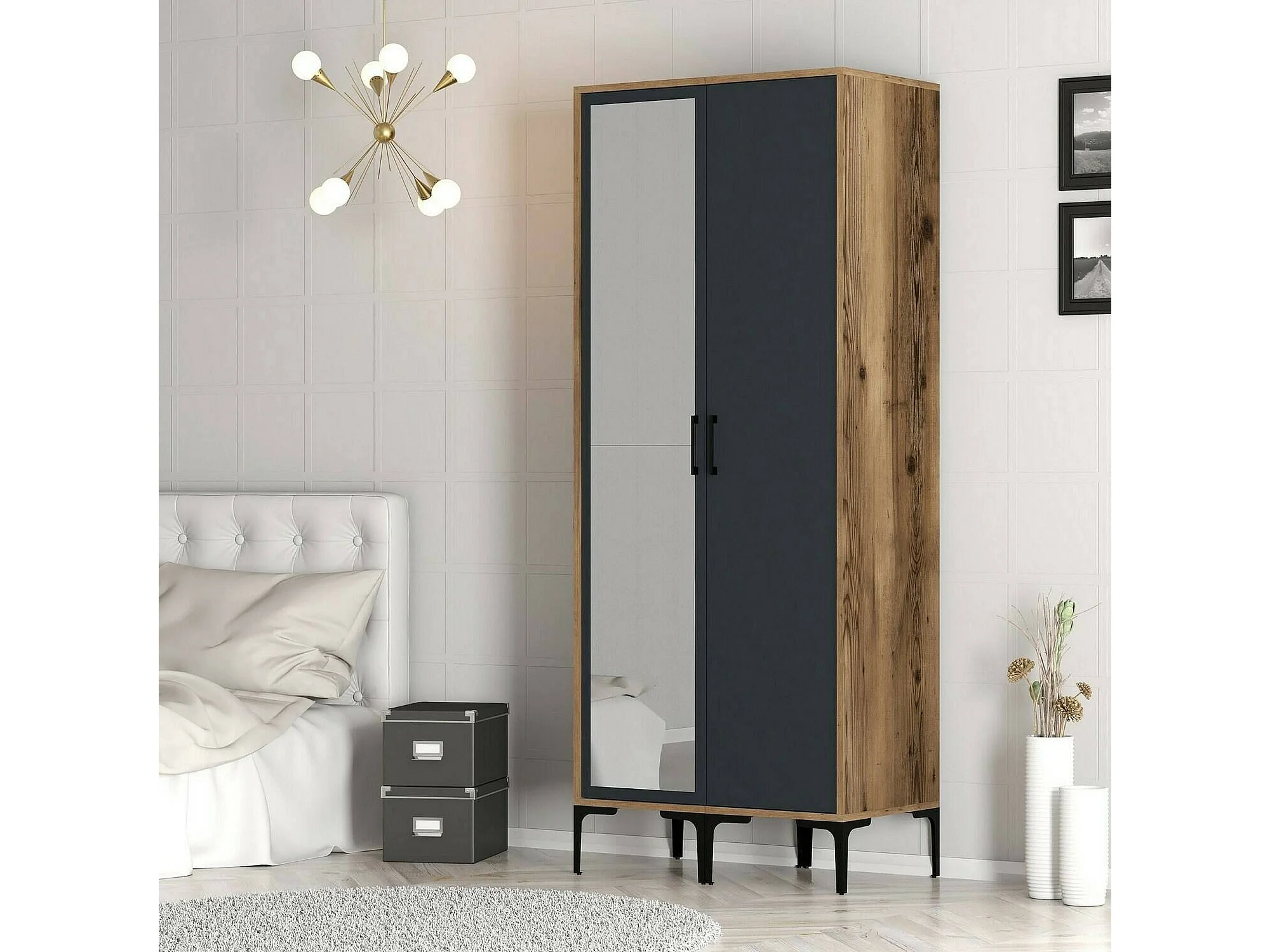 Garde-robe 2 portes Dbergonz, Meubles de chambre, Penderie de plain-pied, Placard à vêtements, 80x201h48 cm, Noyer et Anthracite