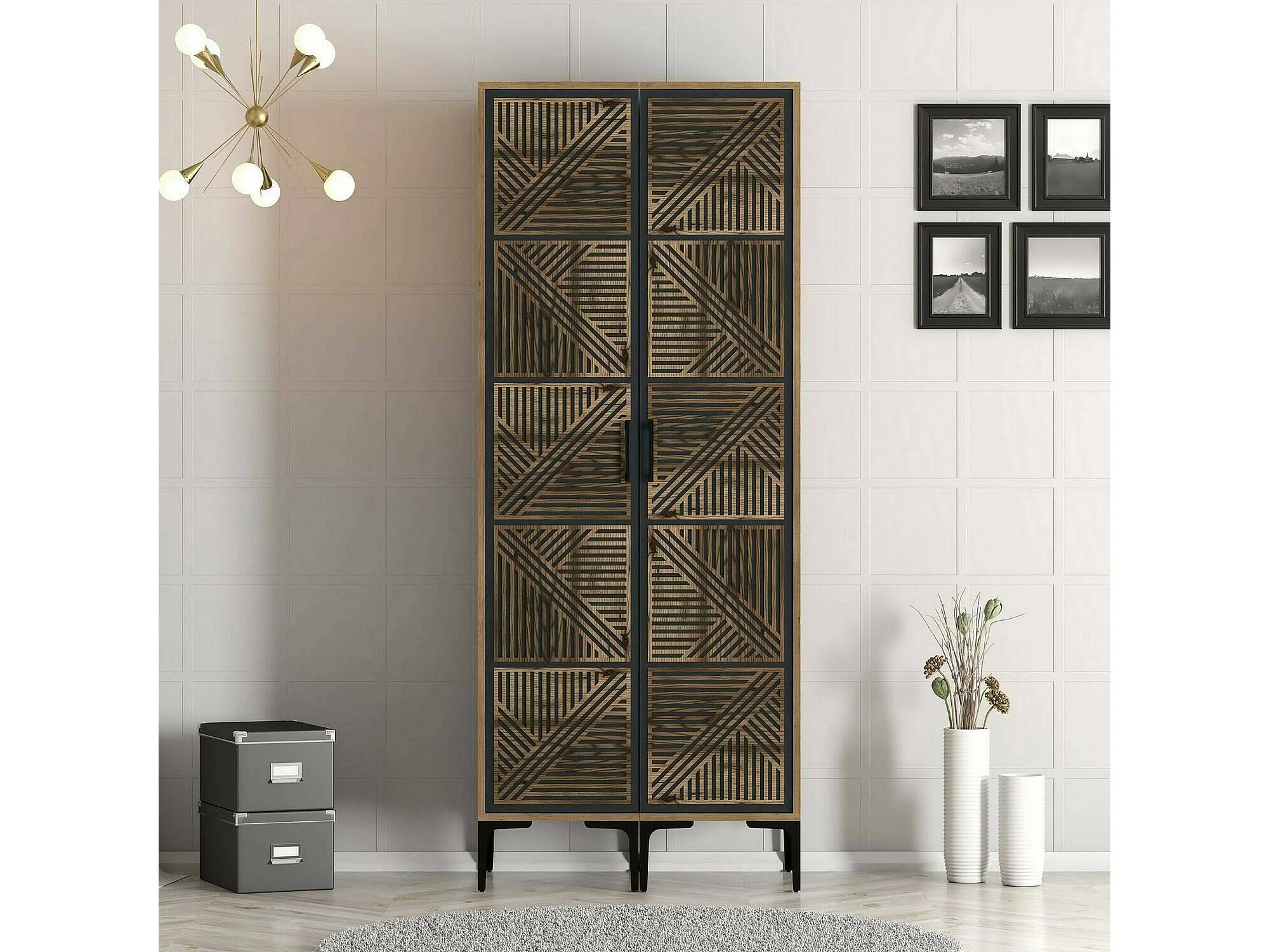 Garde-robe 2 portes Dbonanse, Meubles de chambre, Penderie de plain-pied, Placard à vêtements, 80x201h48 cm, Noyer et Anthracite