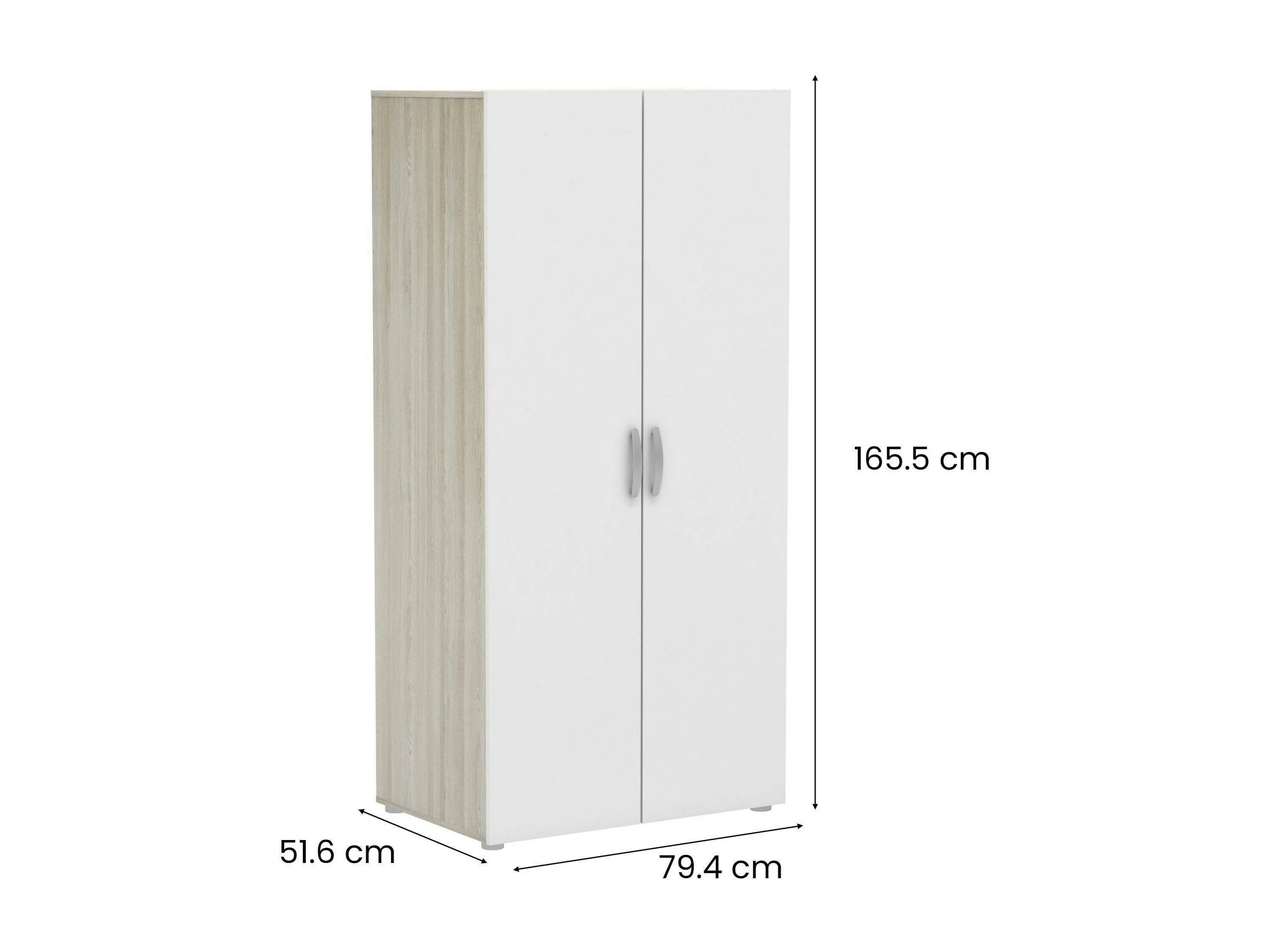 Garde-robe 2 portes Dsaevi, Meubles de chambre, Penderie de plain-pied, Placard à vêtements, 79x52 h166 cm, Chêne et Blanc mat