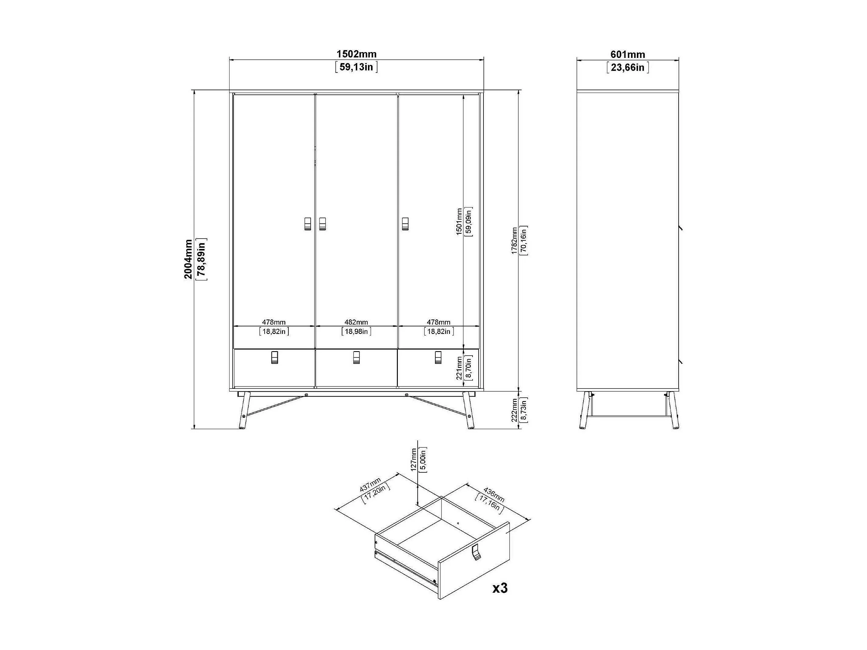 Garde-robe 3 portes Dsalvion, Meubles de chambre, Penderie de plain-pied, Placard à vêtements, 150x60 h200 cm, Chêne clair