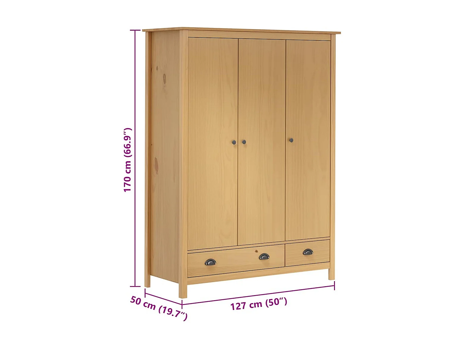 Garde-robe à 3 portes Hill 127x50x170 cm Pin solide