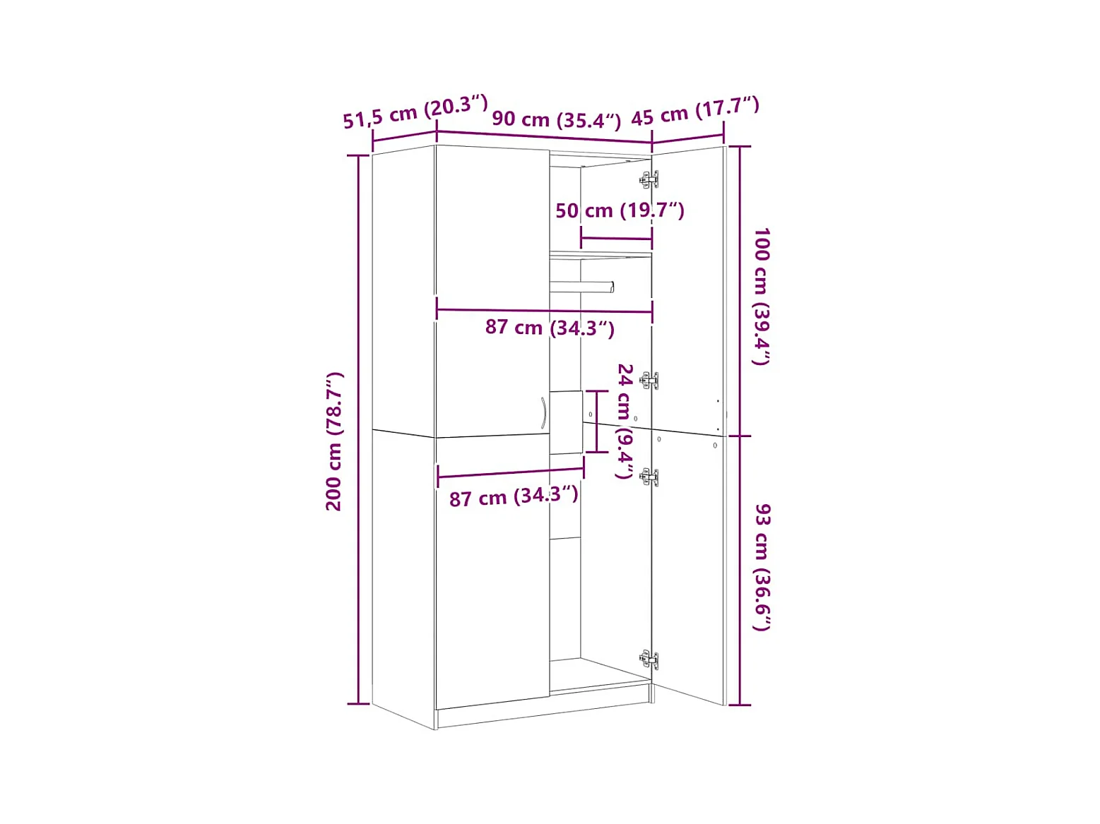Garde-robe Blanc 90x52x200 cm Bois d’ingénierie