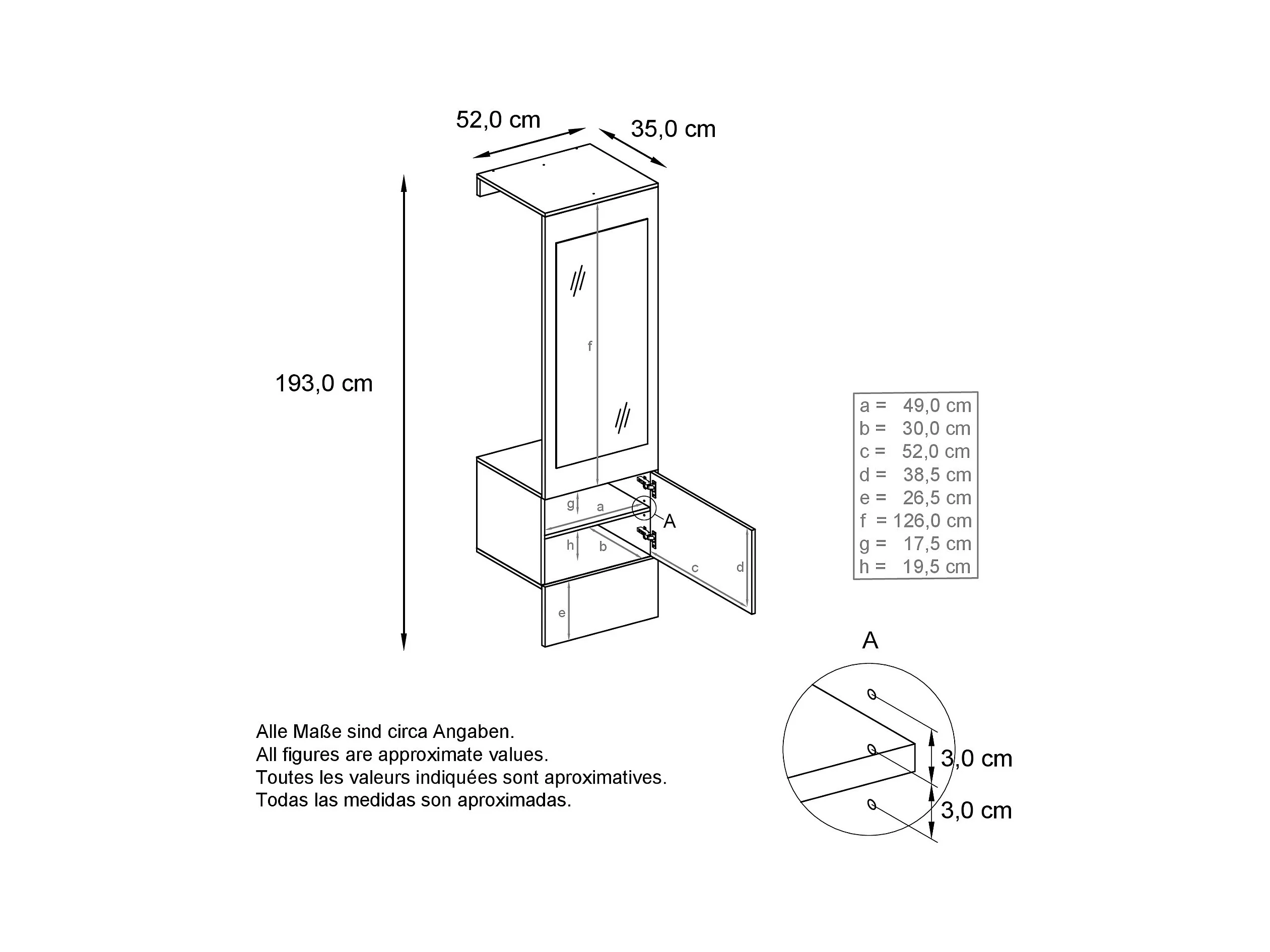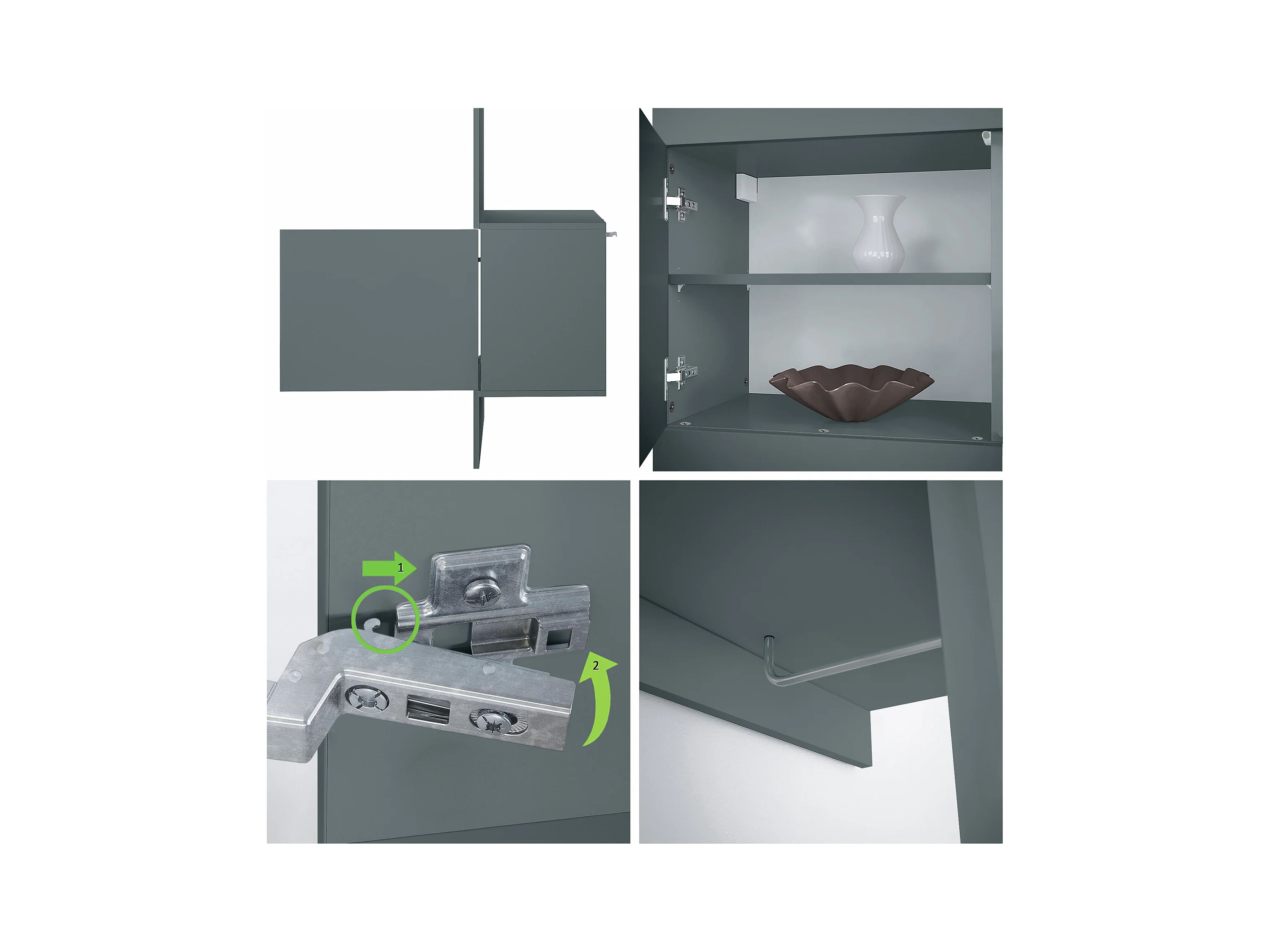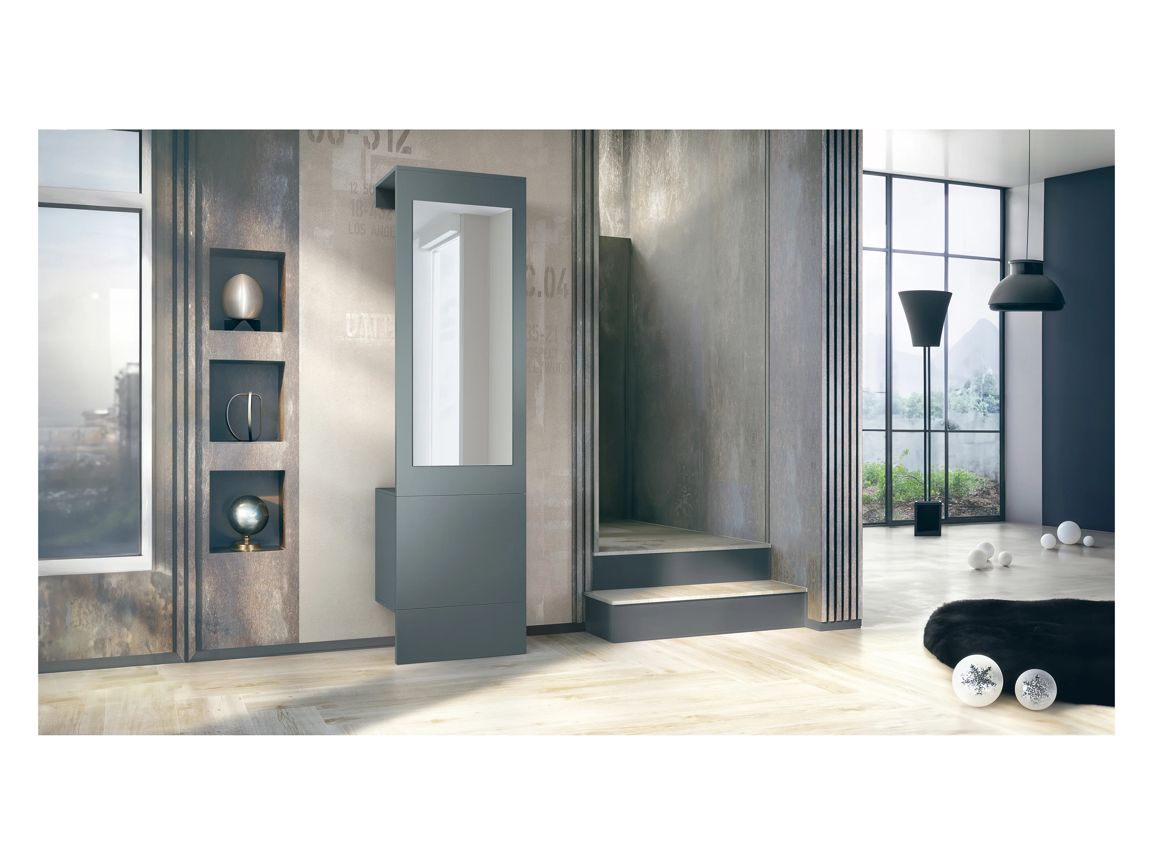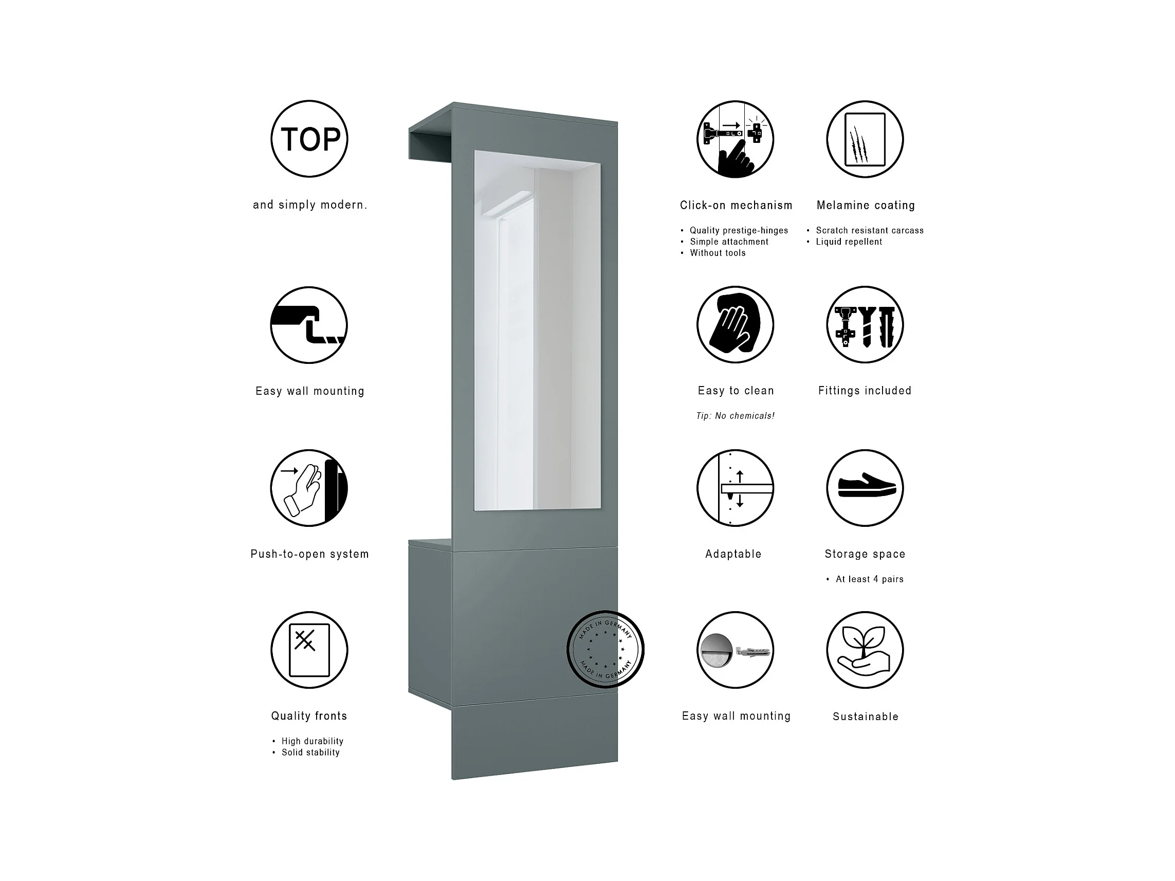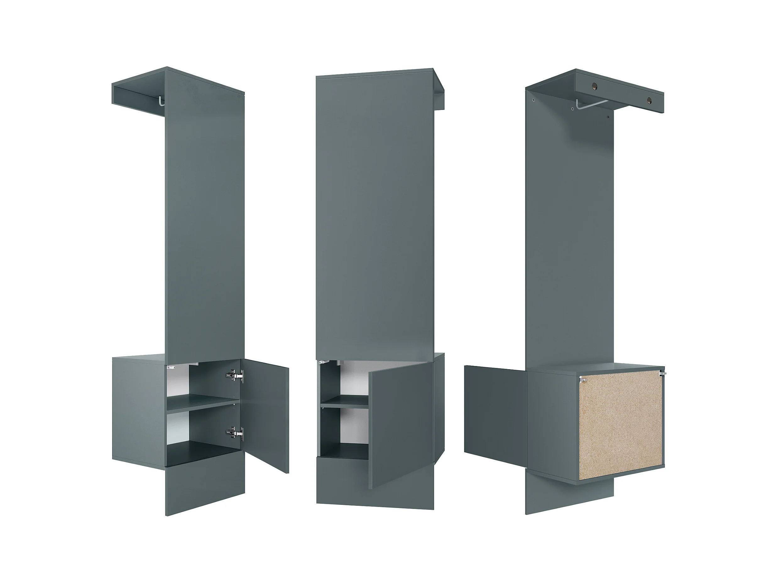 Garde-robe Carlton Neo, Porte-manteau mural avec panneau d'entrée, miroir, tringle à vêtements et armoire murale, Fjord vert (52 x 193 x 35 cm)