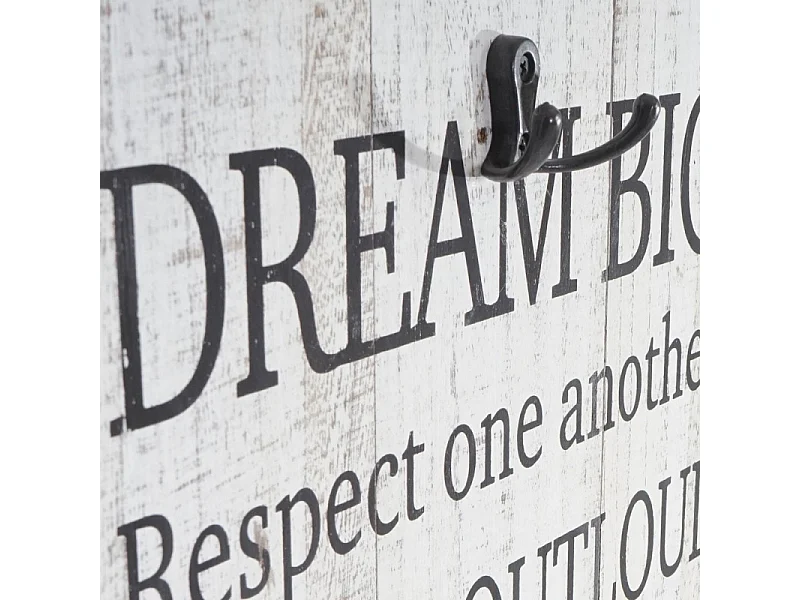 Garde-robe murale Family Rules, planche vestiaire, style shabby, vintage avec 3 crochets, 76x31cm